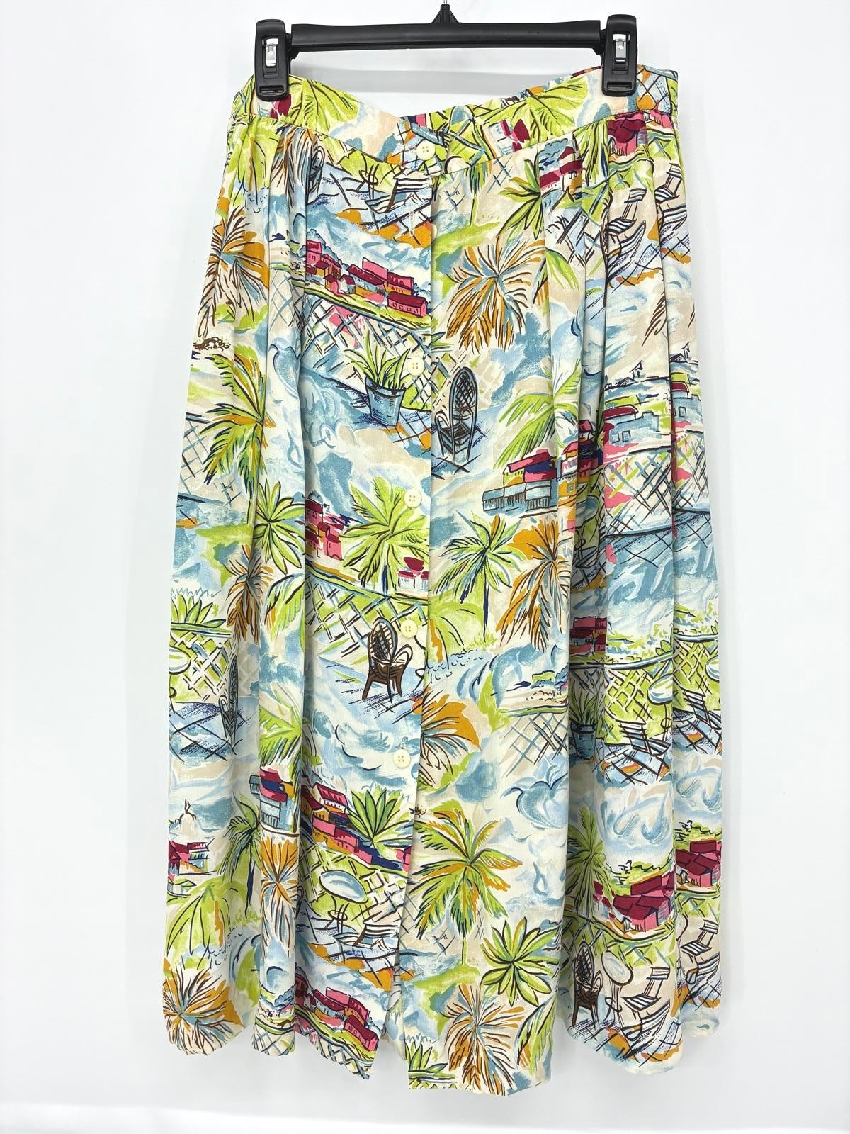 Vintage Pendleton Tropical Printed 100 Rayon Button Front Long Skirt Size 6