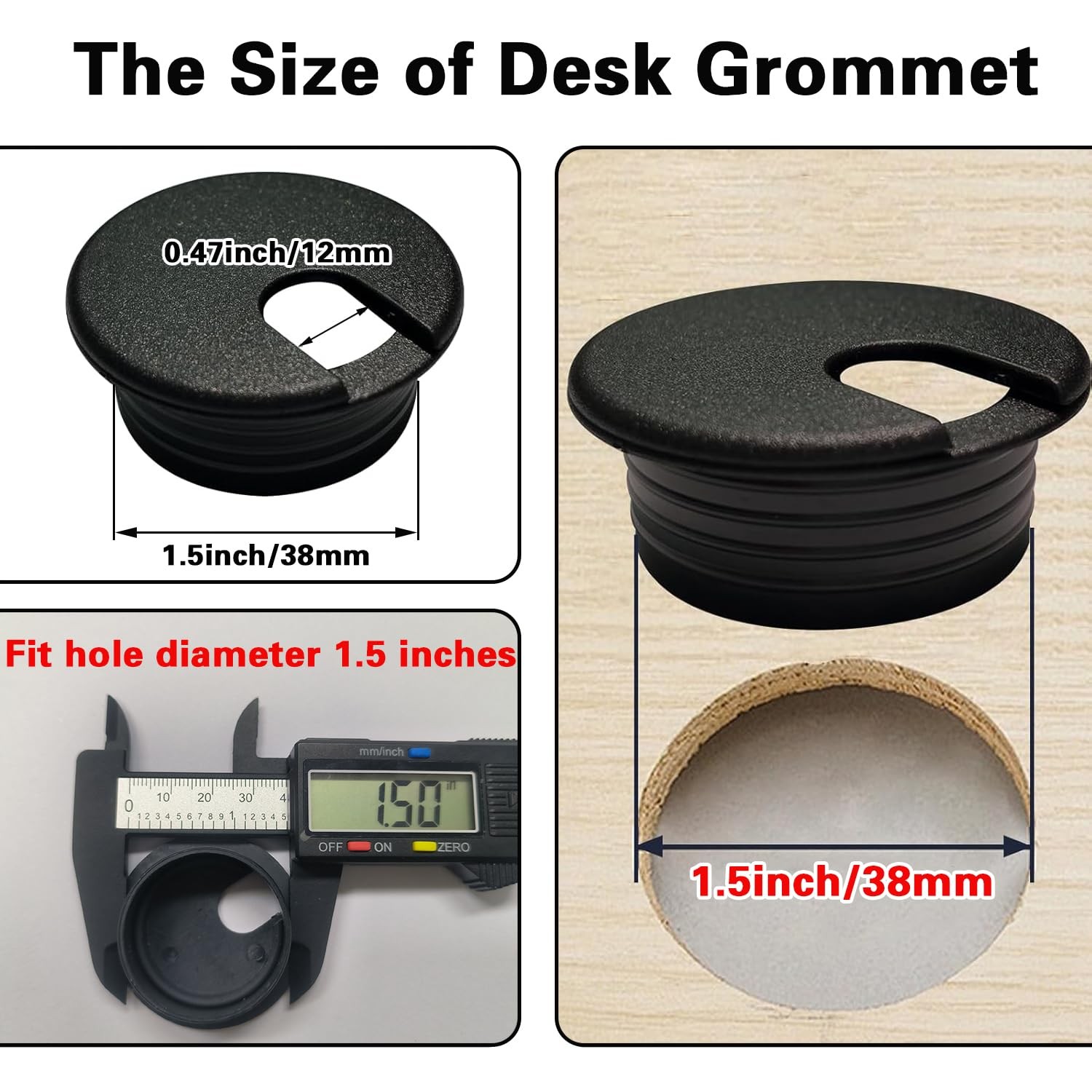 • 2 Pack Desk Grommet 1.5 Inch Cable Hole Cover ABS Plastic Black