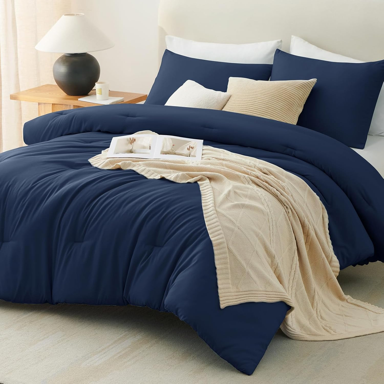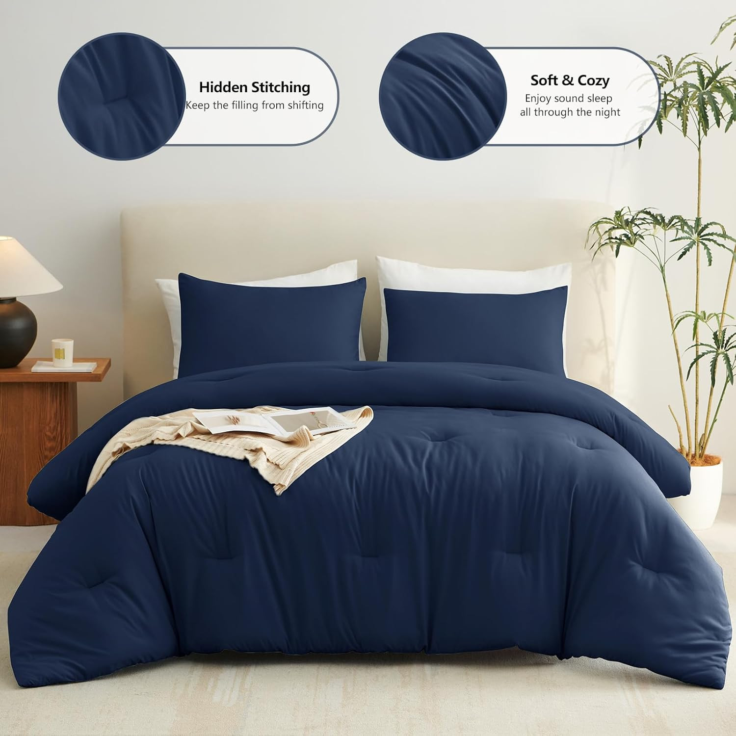 Navy Blue California King Comforter Set, 3 Pieces for All Season