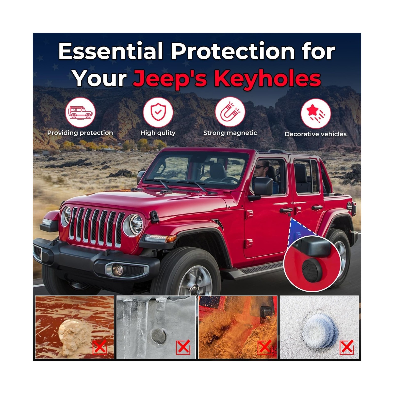 Keyhole Covers Compatible with 2018-2025 Jeep Wrangler JL and Gladiator JT Fr...