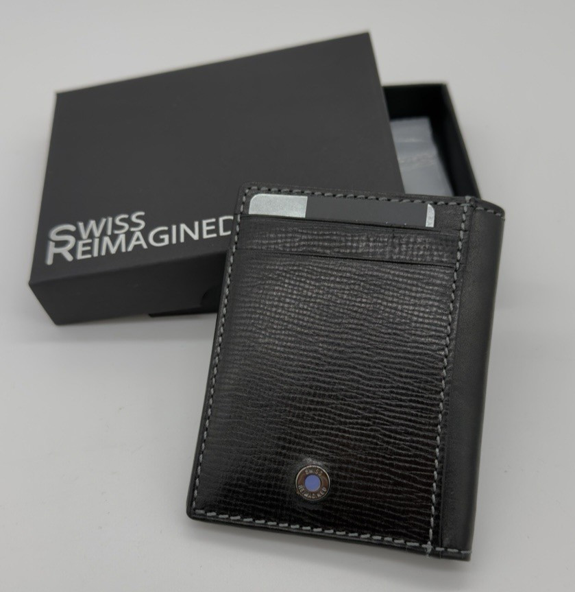 Swiss Reimagined Men's Genuine Leather RFID Wallet Magnetic Money Clip Black NEW