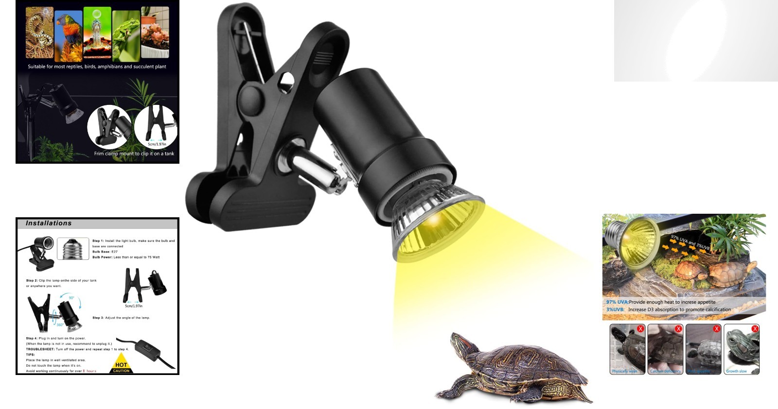 Reptile Heat Lamp with 50W UVA UVB Light Bulb, Basking Spot Light Simulated S...