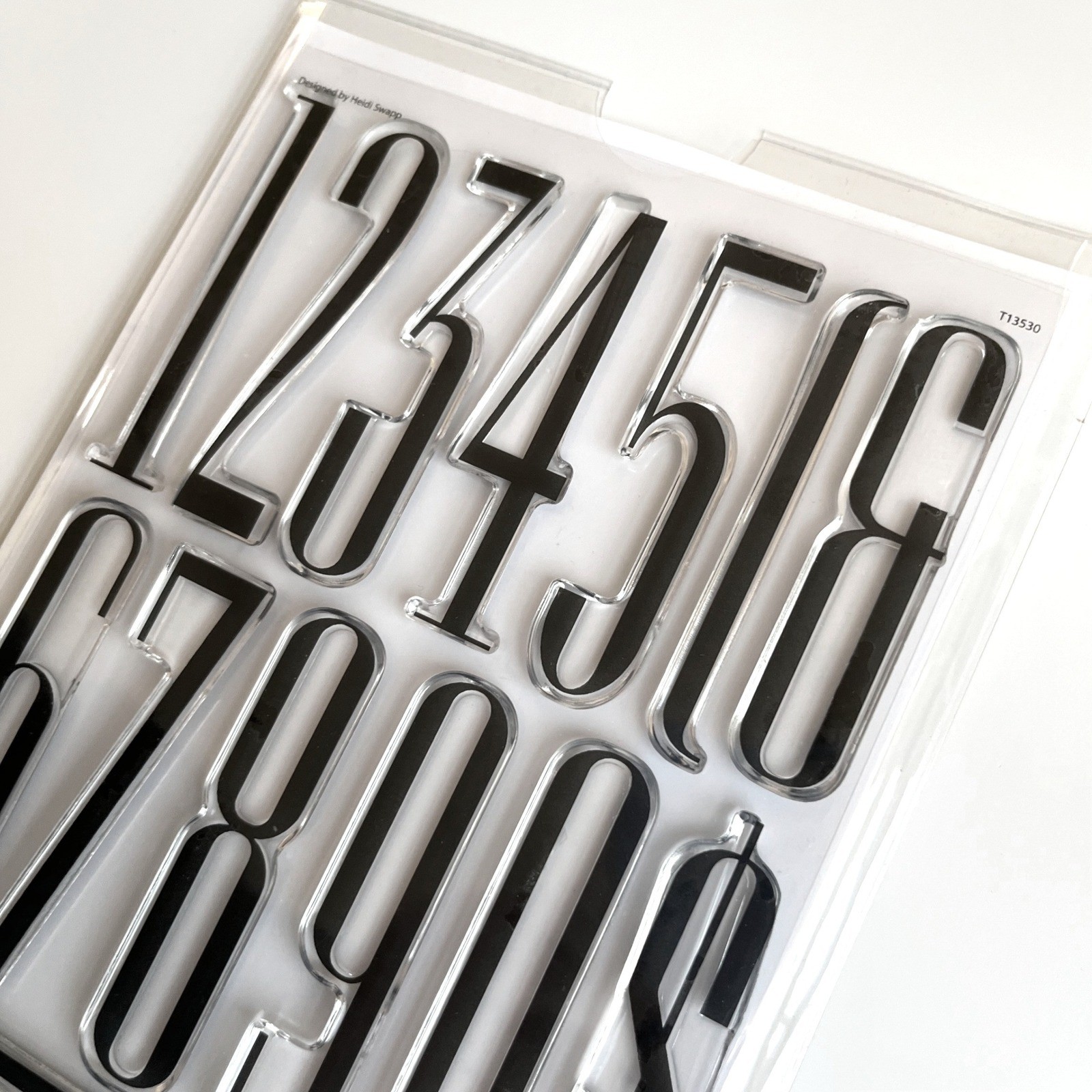 как выглядит New Heidi Swapp 6x8" Clear Stamp Set Stamp Sleeve Captions Numbers фото