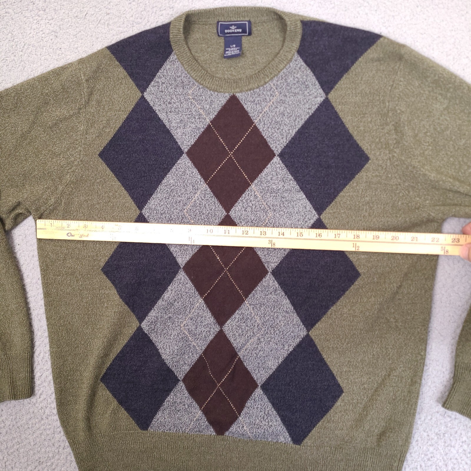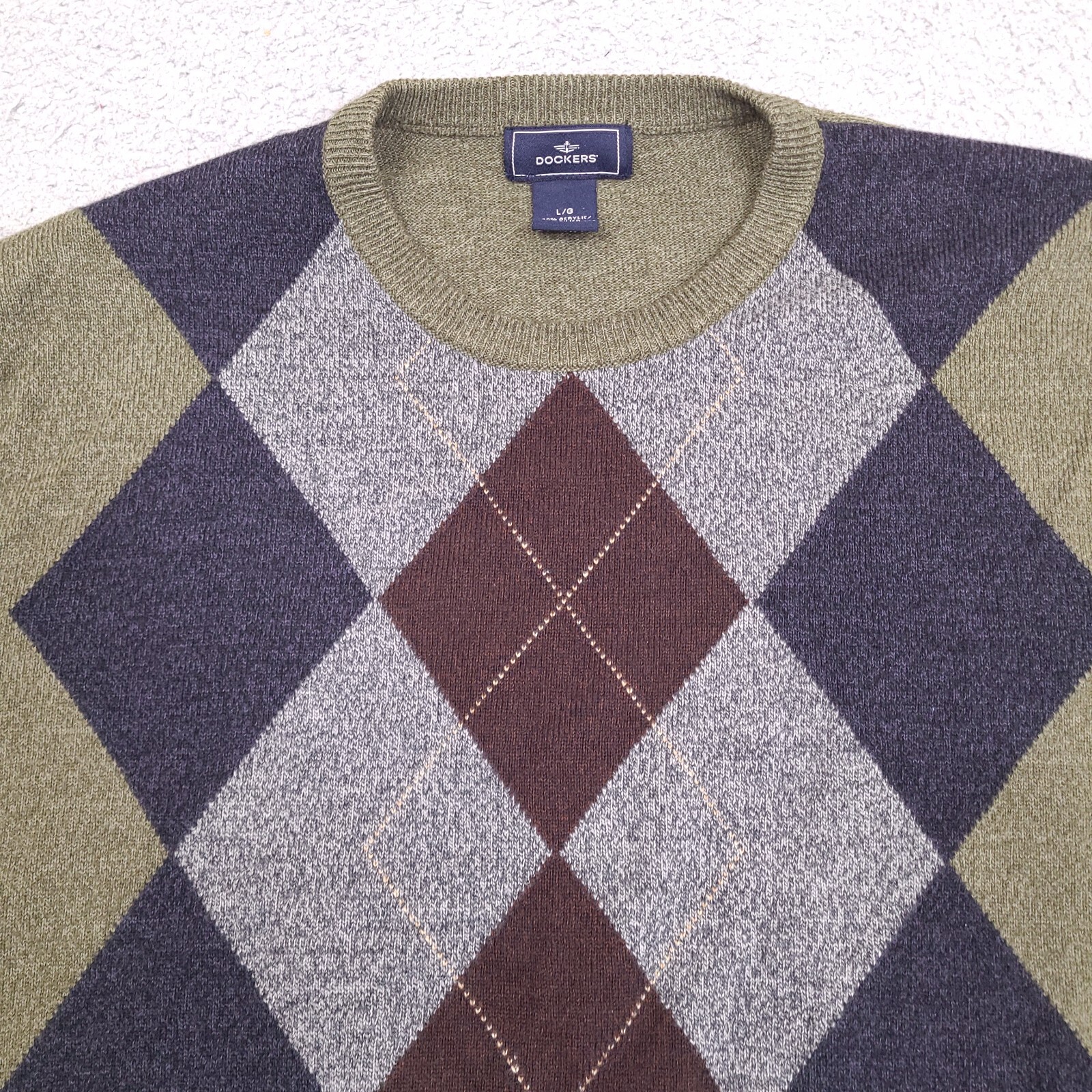 как выглядит Dockers Mens Large Argyle Knit Sweater Green Long Sleeve Lightweight Acrylic фото