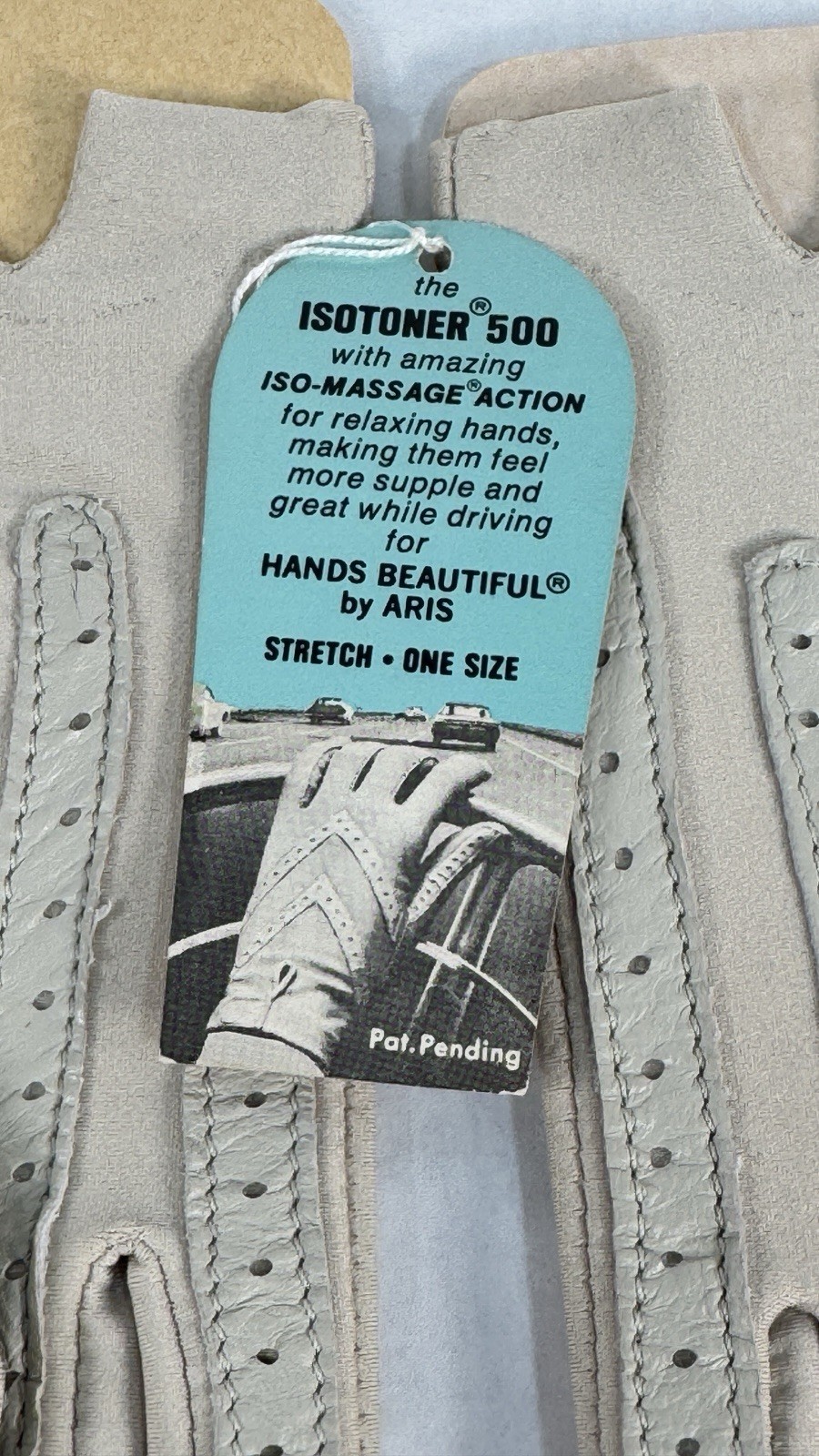 Vintage Aris Isotoner 500 Gloves Womens One Size Leather Driving Gloves Tan NEW