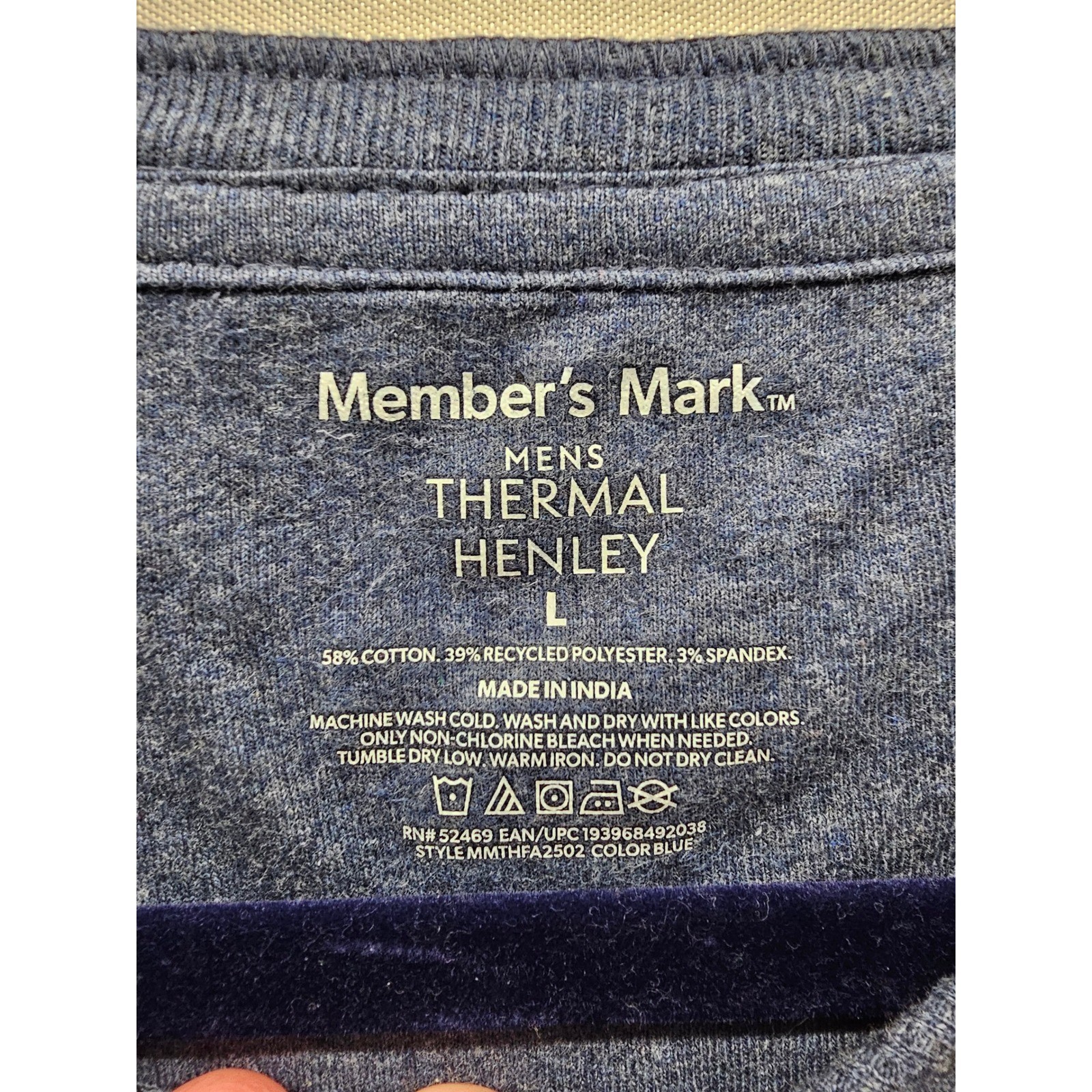 как выглядит Members Mark Mens Thermal Henley Shirt Blue Waffle Knit Long Sleeve L фото