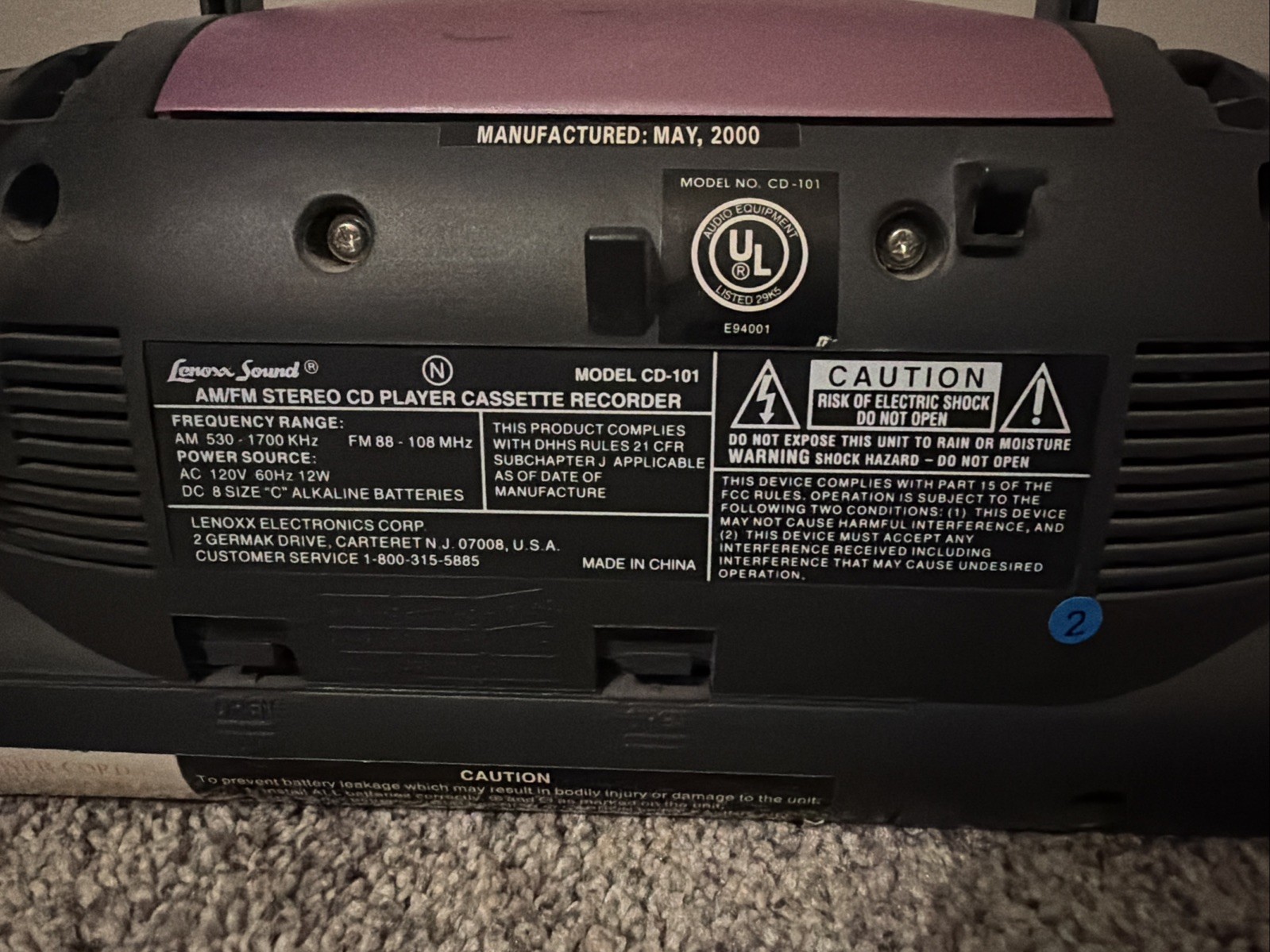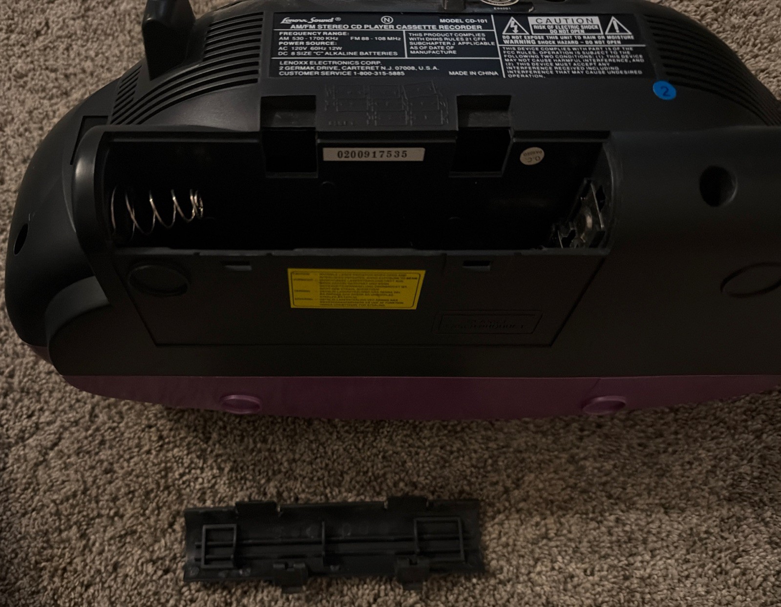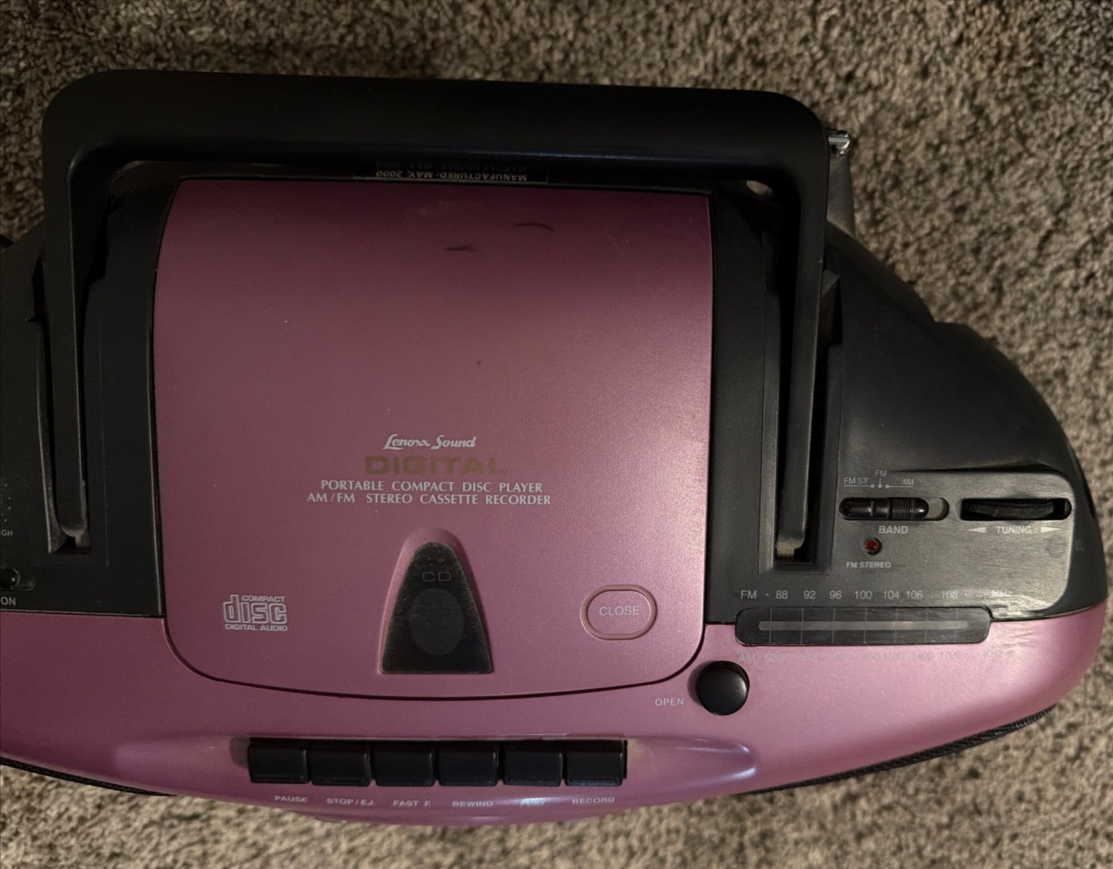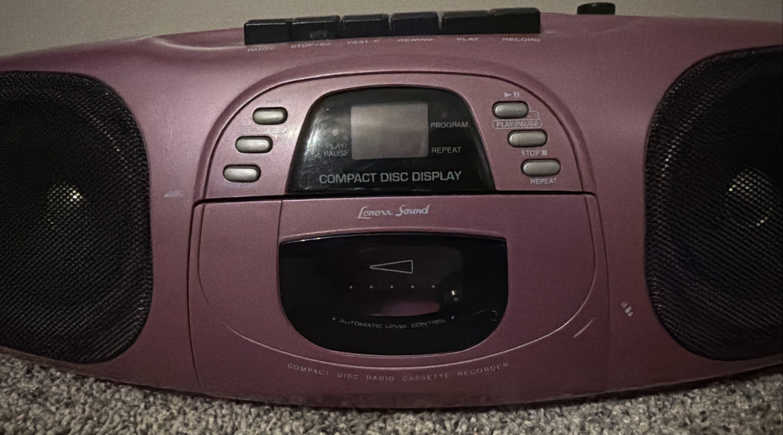 Lenoxx Sound Portable CD Player AMFM Stereo Cassette Recorder Purple Tested Y2K