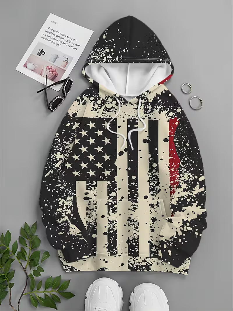 Vintage-Style American Flag Design 3D Print Hoodie - Adults Youth
