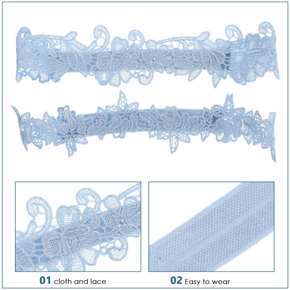 Blue Garter Belt for Bride Lace Flower Wedding Leg Bridal Garters