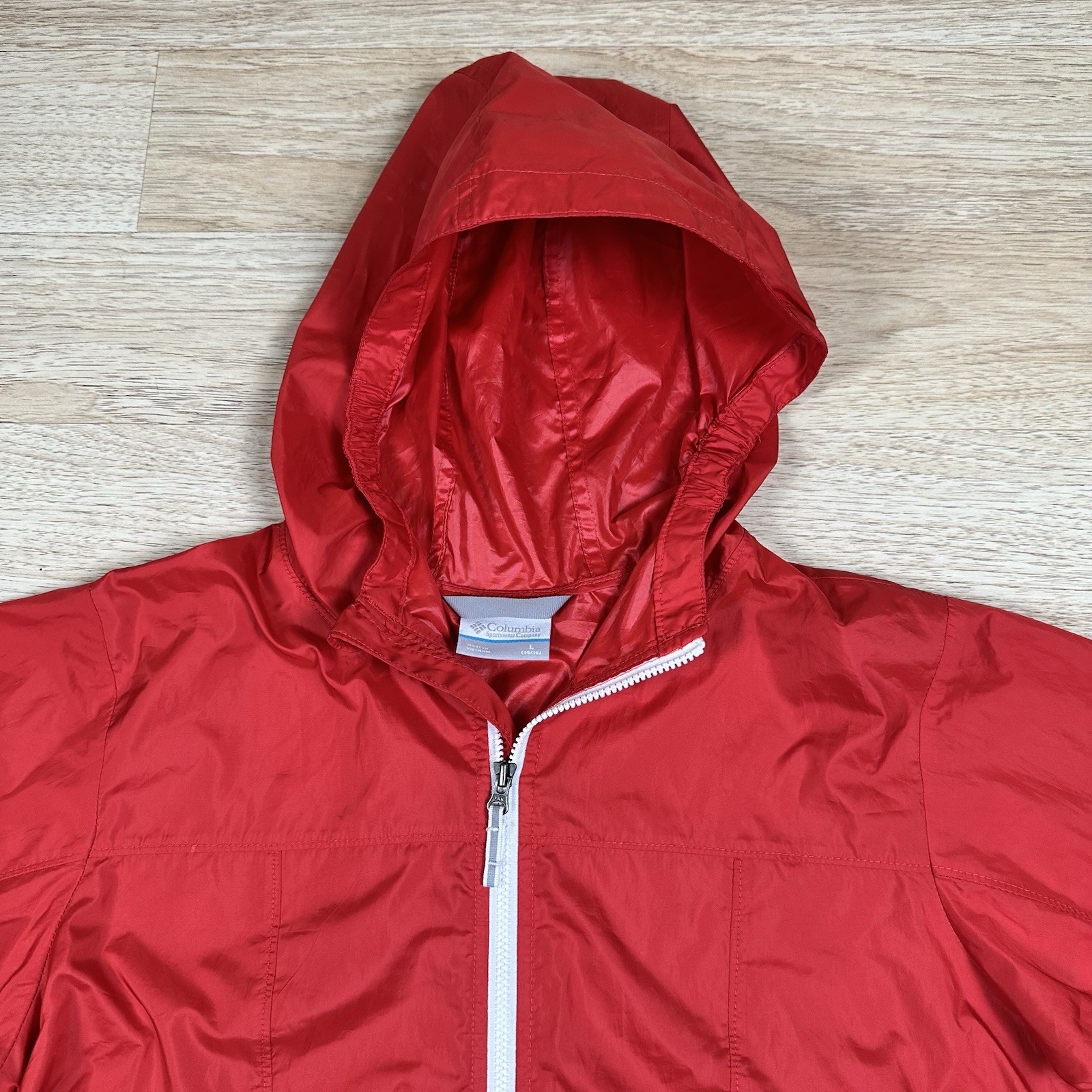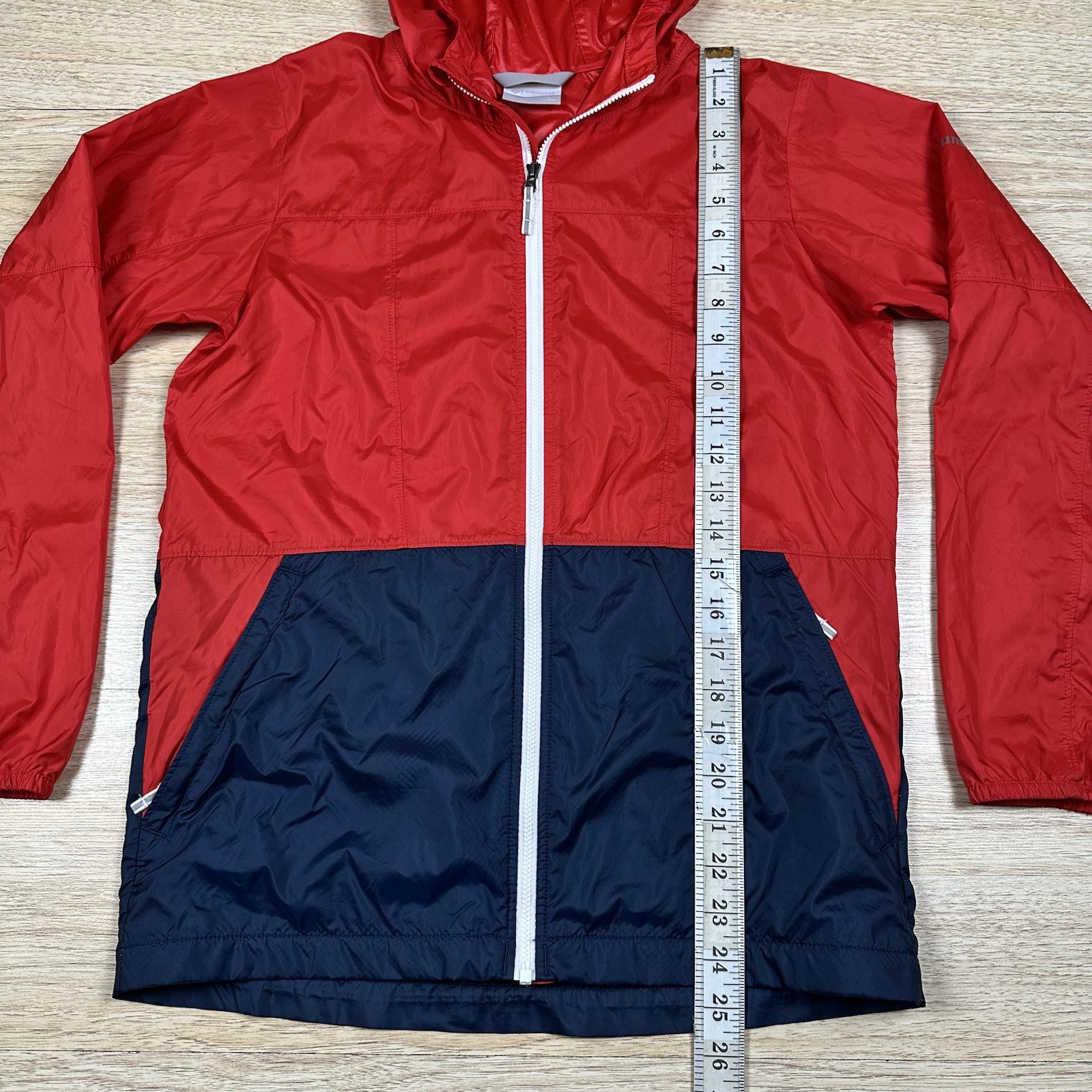 как выглядит Boys Columbia Size Large 14/16 Zip Up Hooded Nylon Jacket Blue Red фото
