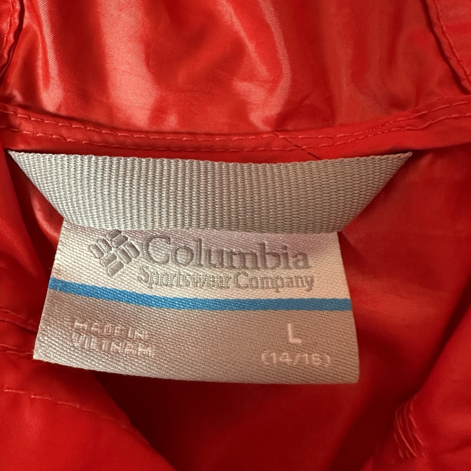 Boys Columbia Size Large 14/16 Zip Up Hooded Nylon Jacket Blue Red