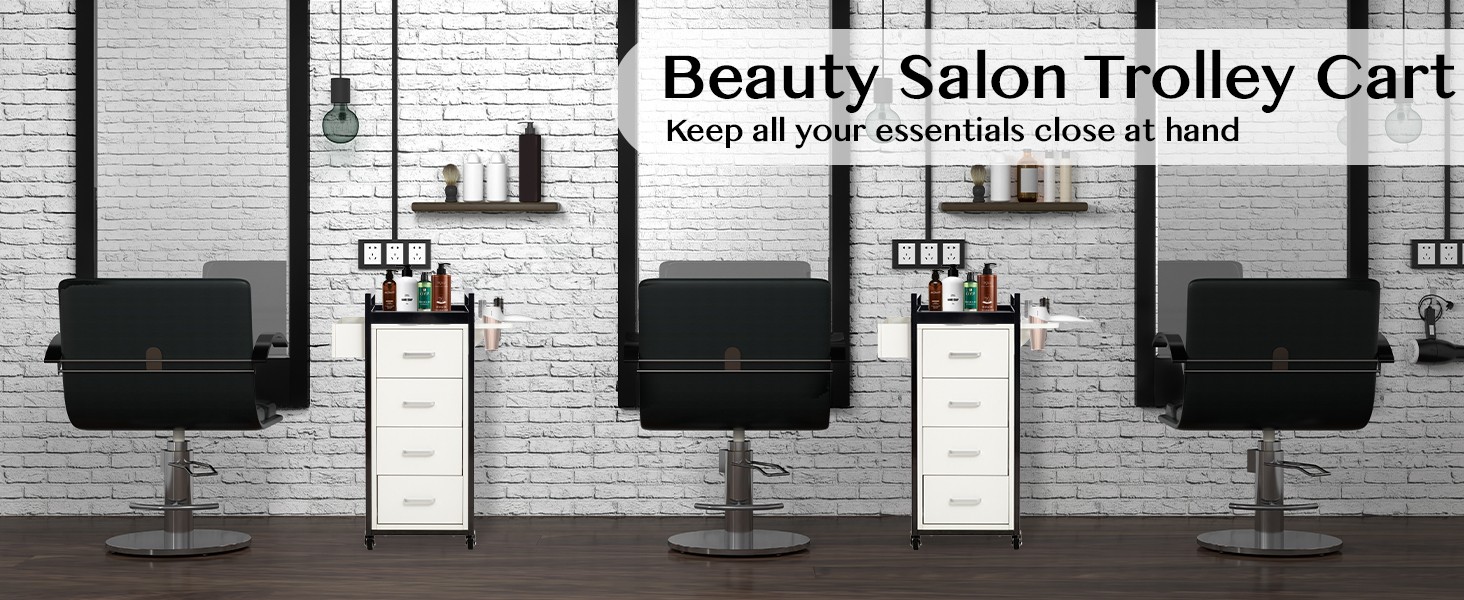 Beauty Salon Trolley Cart, Salon Cabinet with 360 Casters, Drawers, Tool Holder