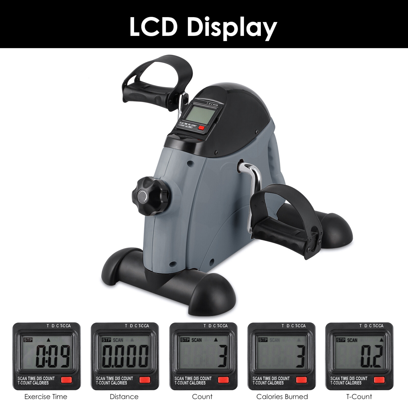 Under Desk Mini Exercise Bike Portable Pedal Exerciser, Arm Leg w/ LCD Display