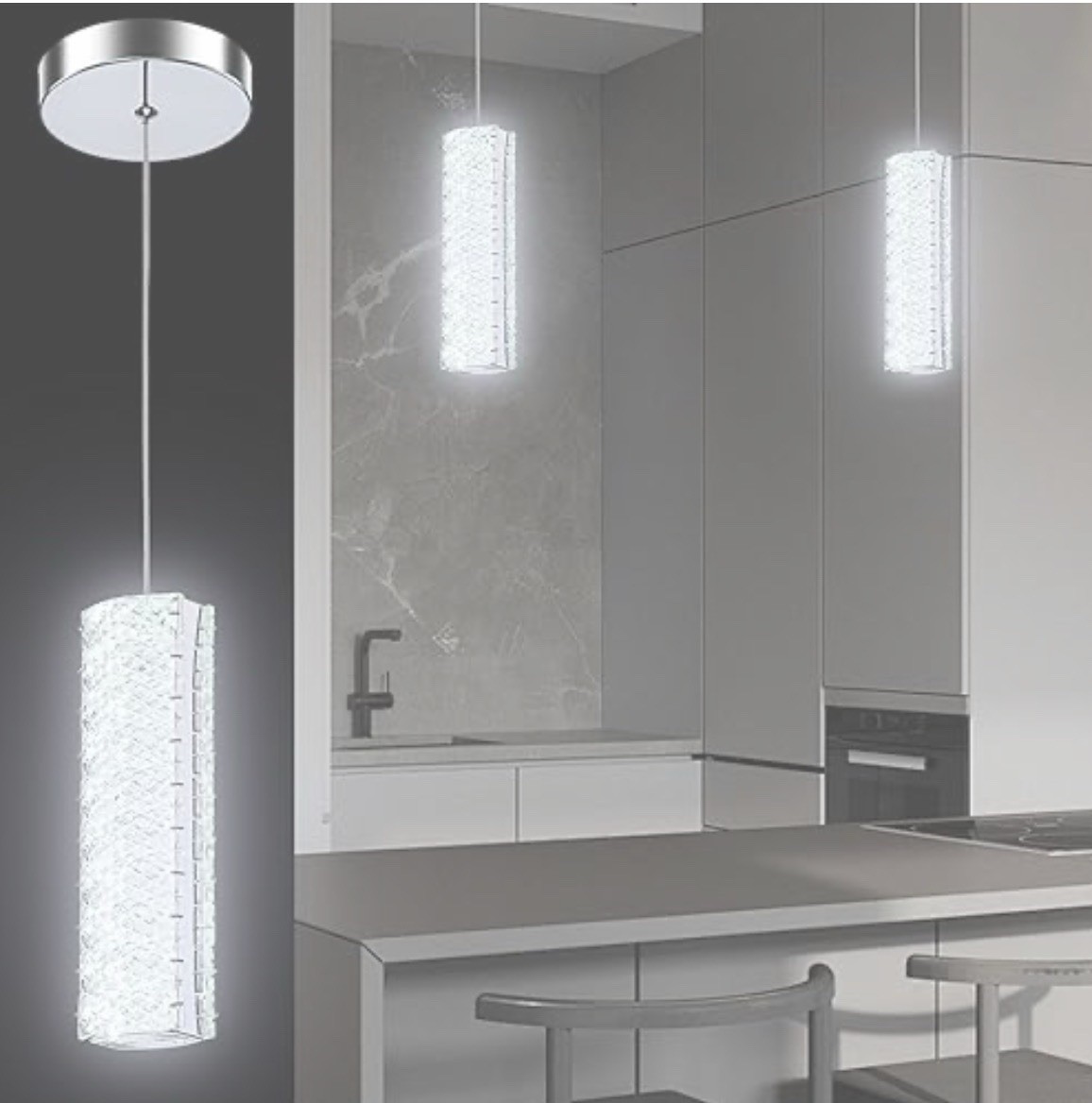 3 pcs Modern Crystal LED Pendant Lights for Kitchen Over Island With Remote Hang