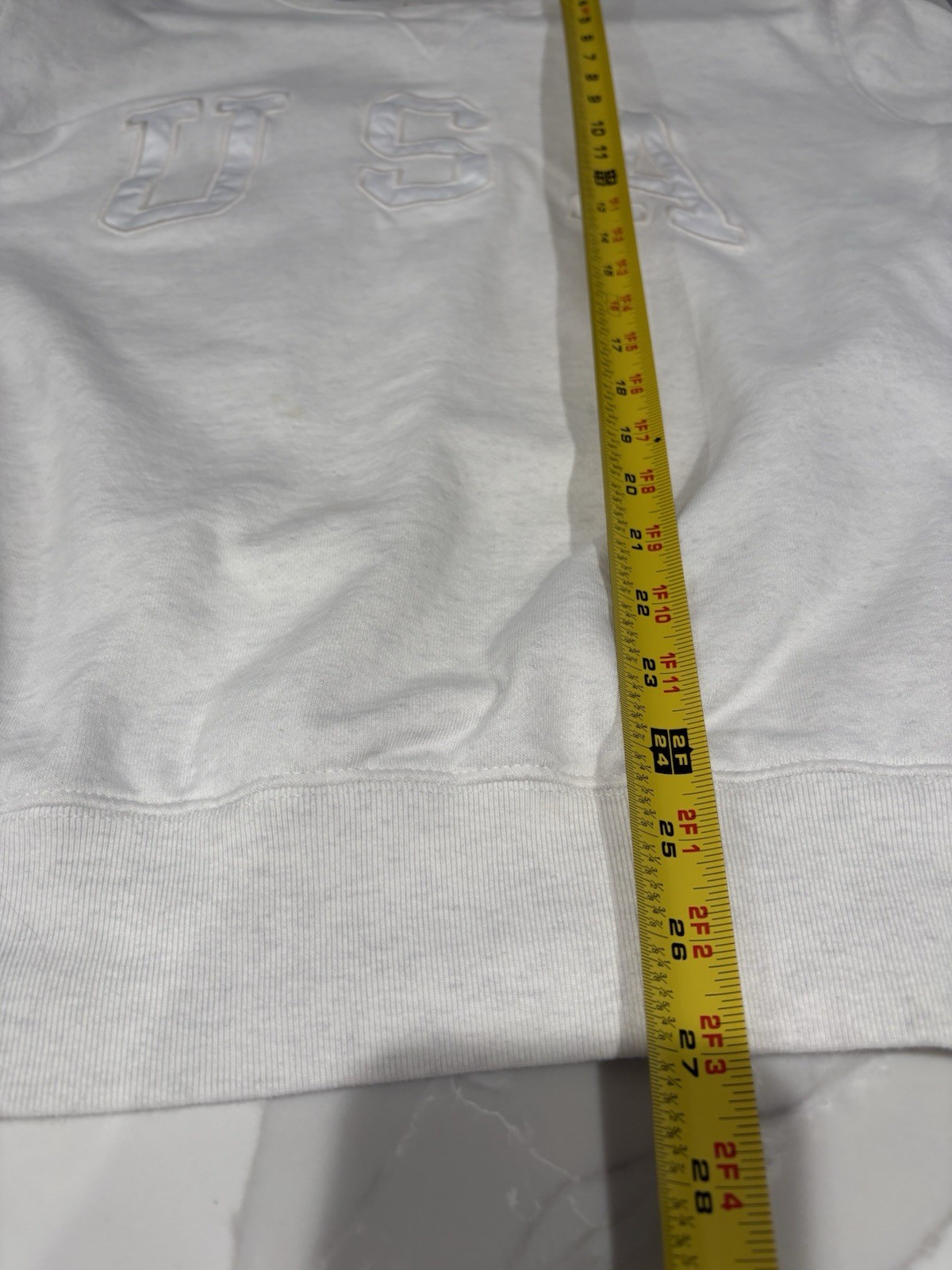 как выглядит Brandy Melville Cream USA Sweatshirt Small Stain On Front See Pictures фото