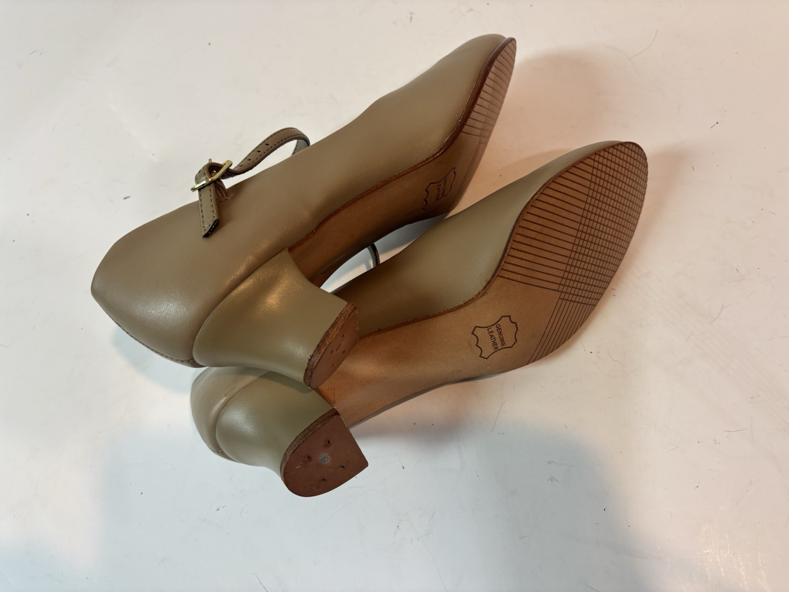 как выглядит NWOB Capezio 550 Tan Leather Character Heels Mary Jane Dance Shoes Size 9M фото