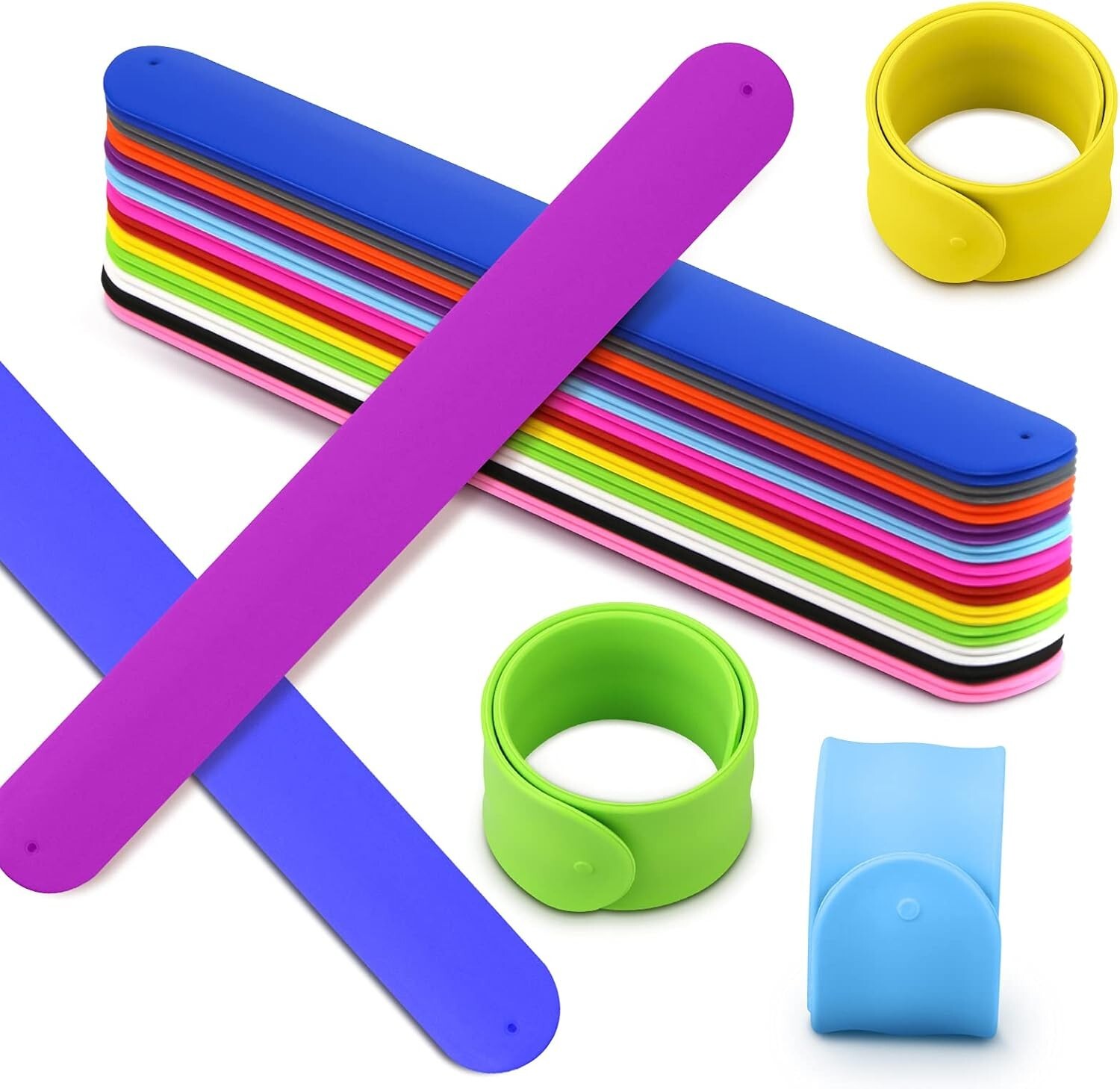 как выглядит 24 Pcs Rainbow Silicone Slap Bracelets Unisex Party Favors Wristbands фото