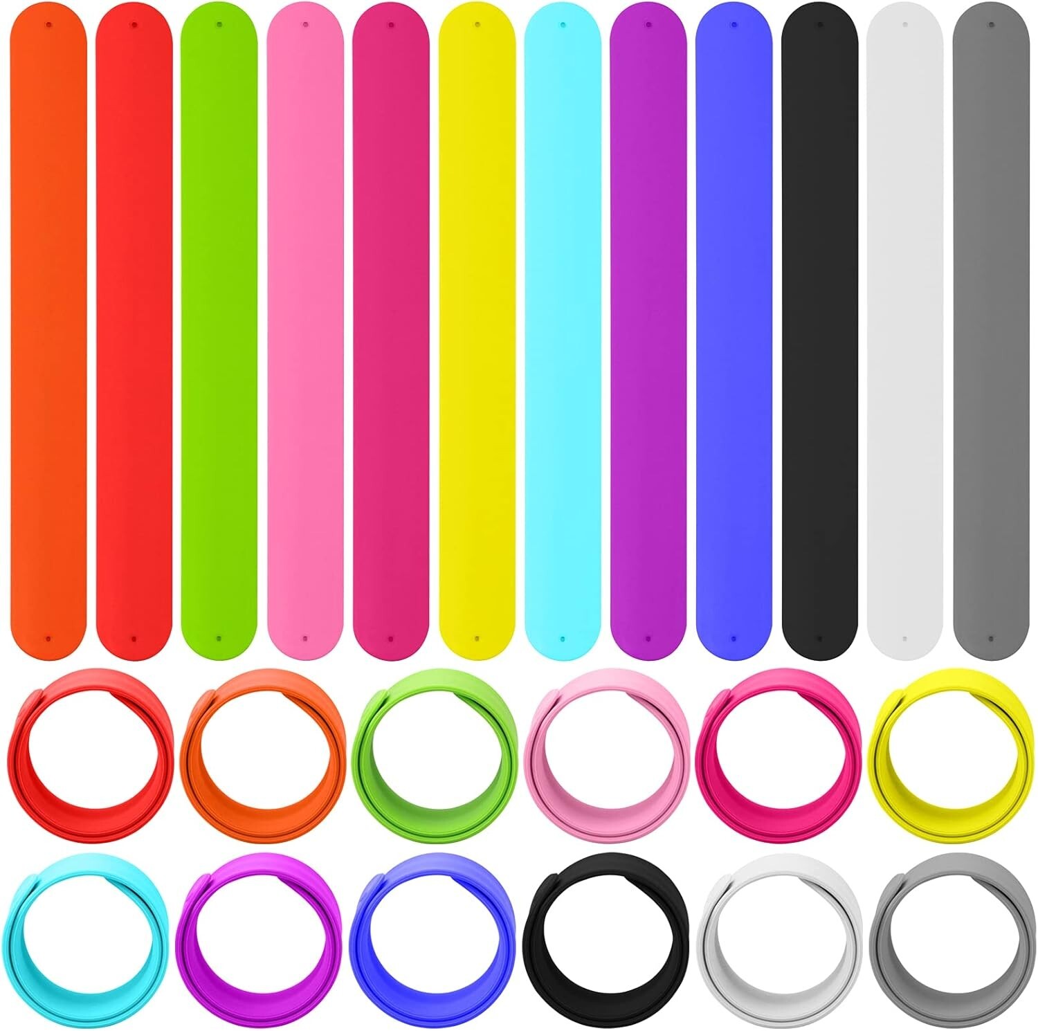 24 Pcs Rainbow Silicone Slap Bracelets Unisex Party Favors Wristbands