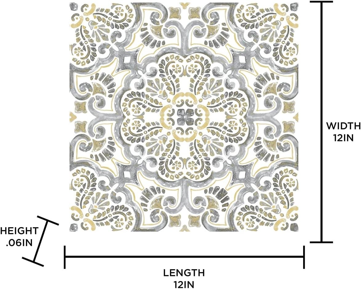 Vinyl Peel Stick Floor Tiles 12x12in Water Resistant Easy Install for Kitchen