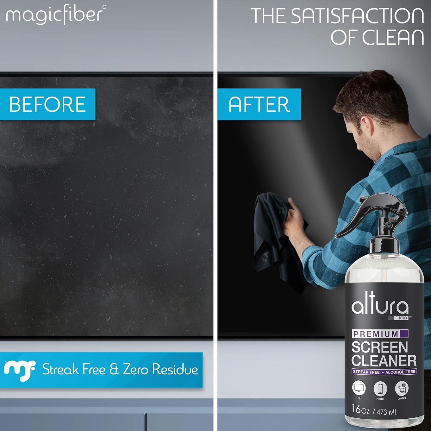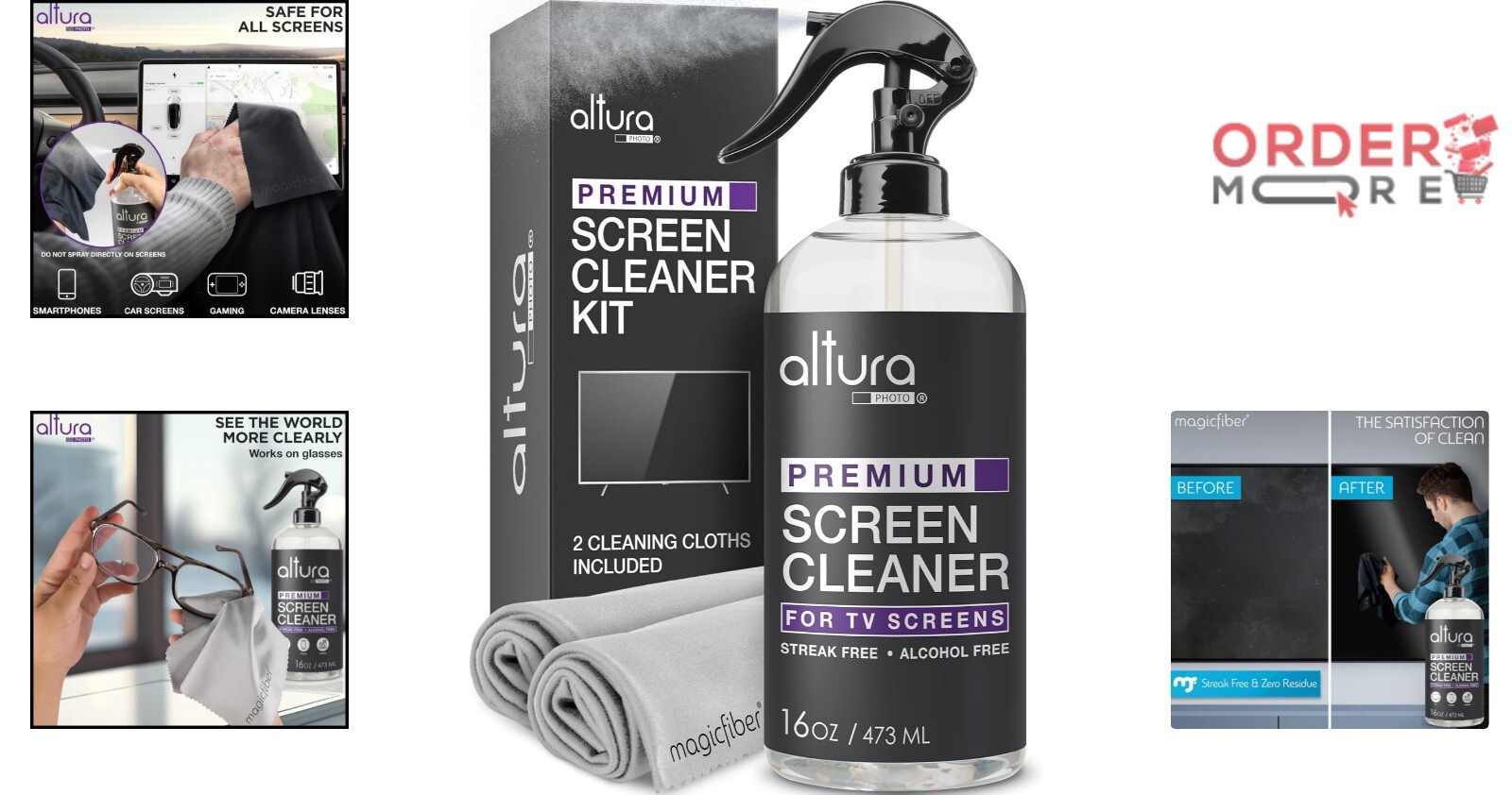16oz Streak-Free Screen Cleaner Kit for TV, Monitor Laptop - 2 Cloths Included