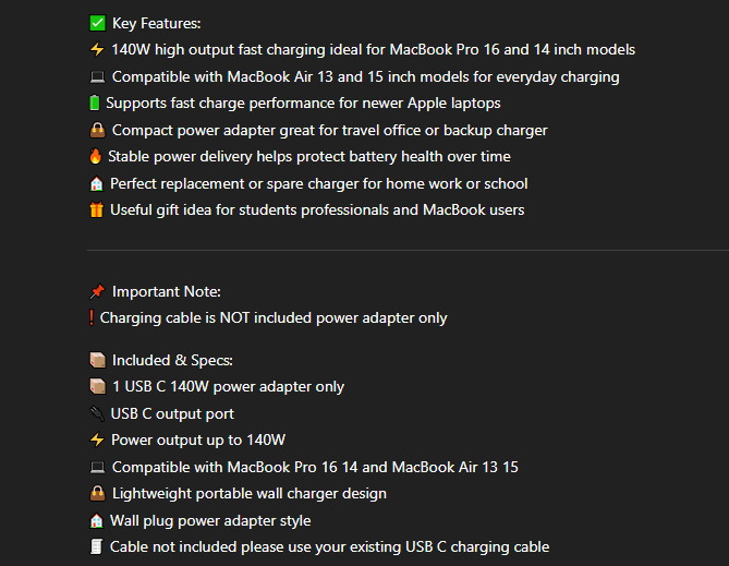 как выглядит 140W USB C Charger For MacBook Pro 16 14 Air 15 13 Fast Charging Power Adapter фото