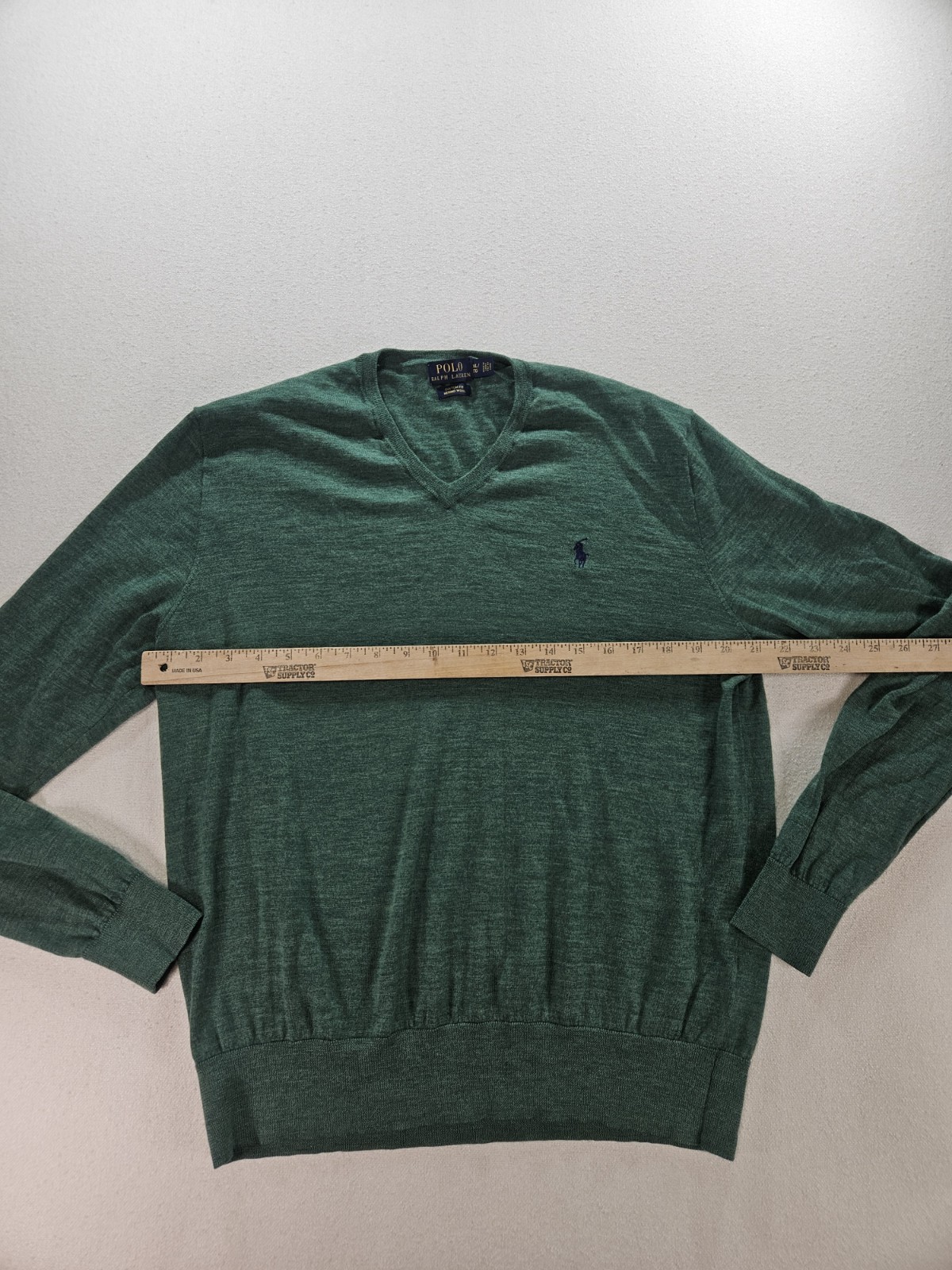 Polo Ralph Lauren Merino Wool Sweater XL Custom Fit Green V Neck