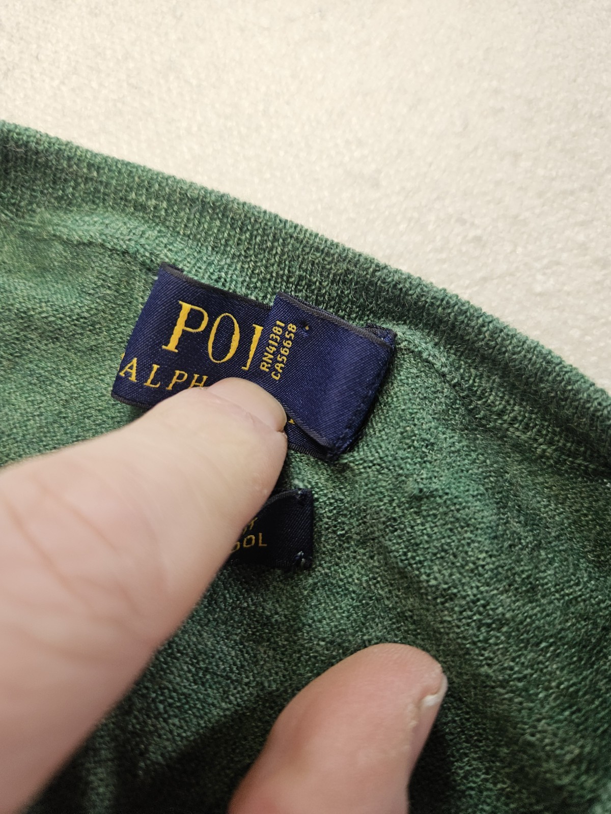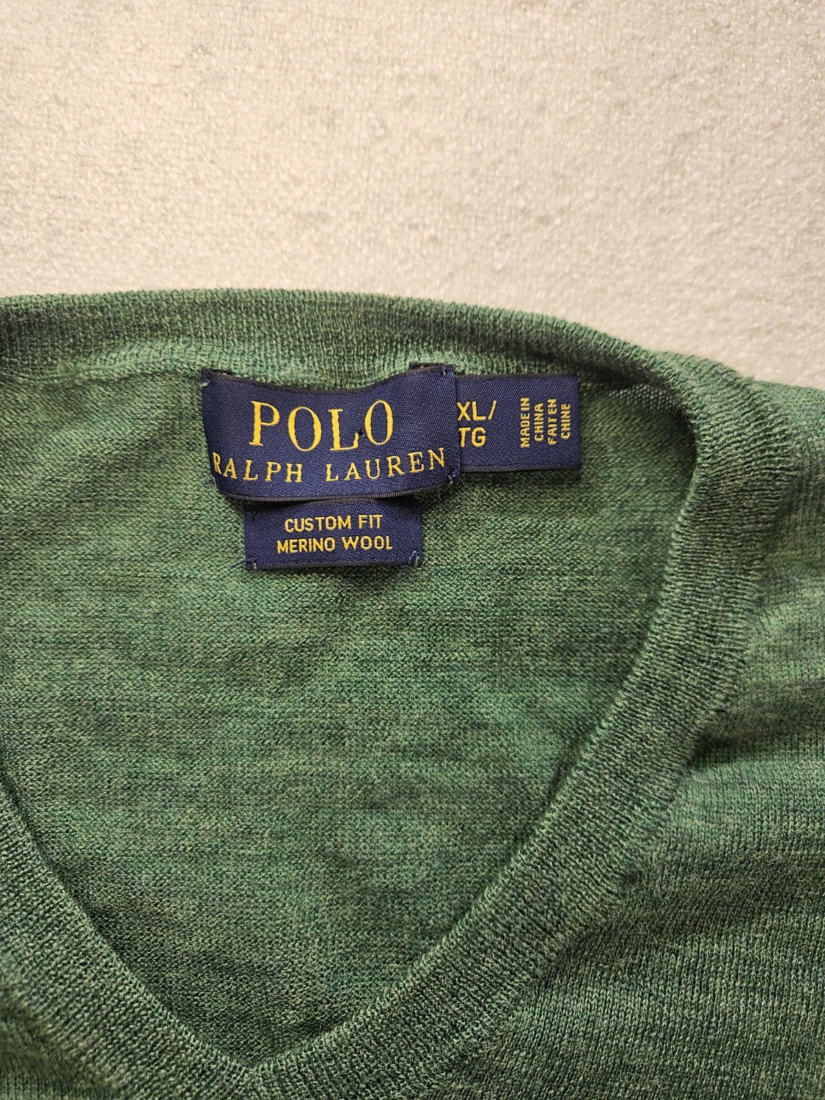 как выглядит Polo Ralph Lauren Merino Wool Sweater XL Custom Fit Green V Neck фото