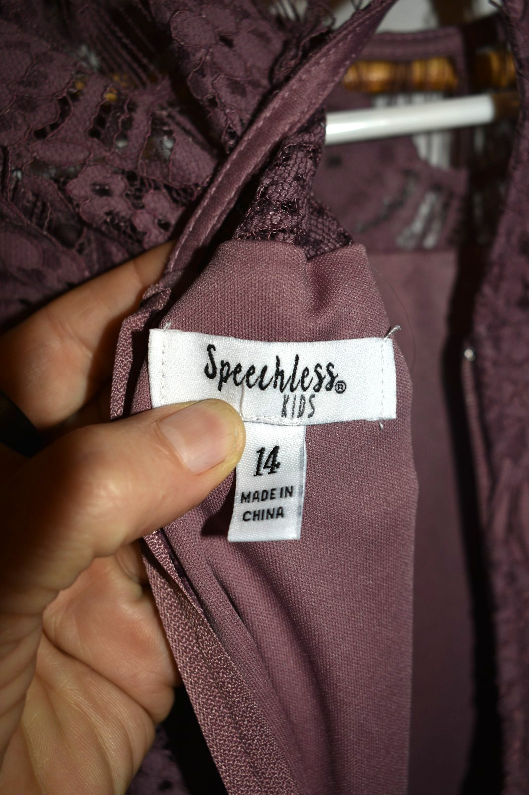 Speechless Kids Lace Crochet Dress Mauve Girls Size 14 Cap Sleeves, Tiered