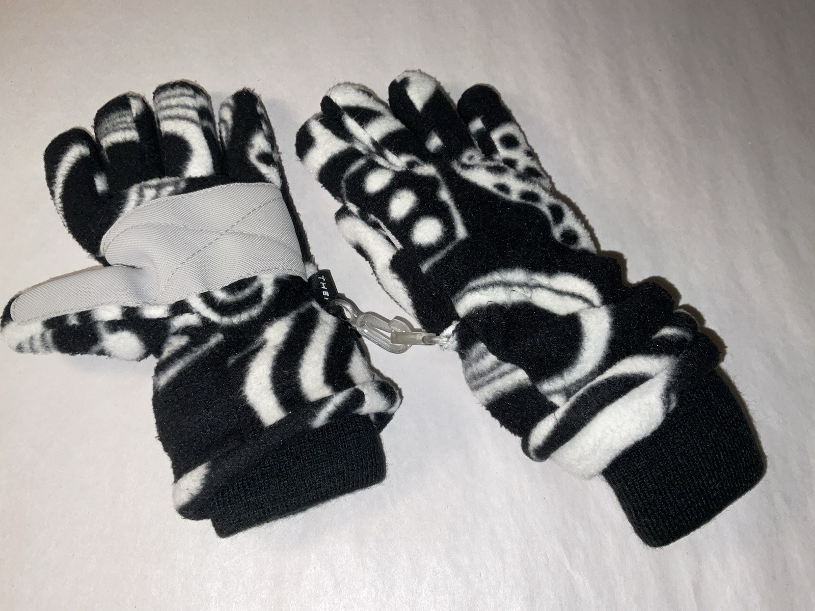 The Children's Place Black White Fleece Gloves Size 4-6 Attached Clip
