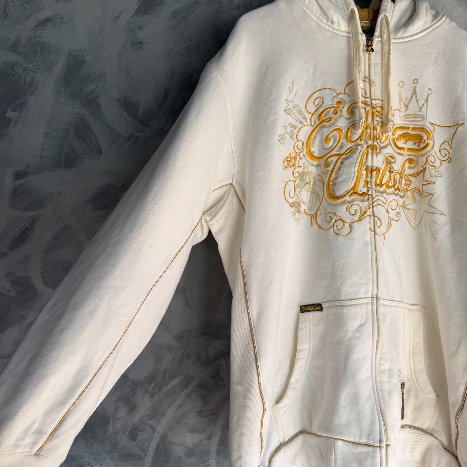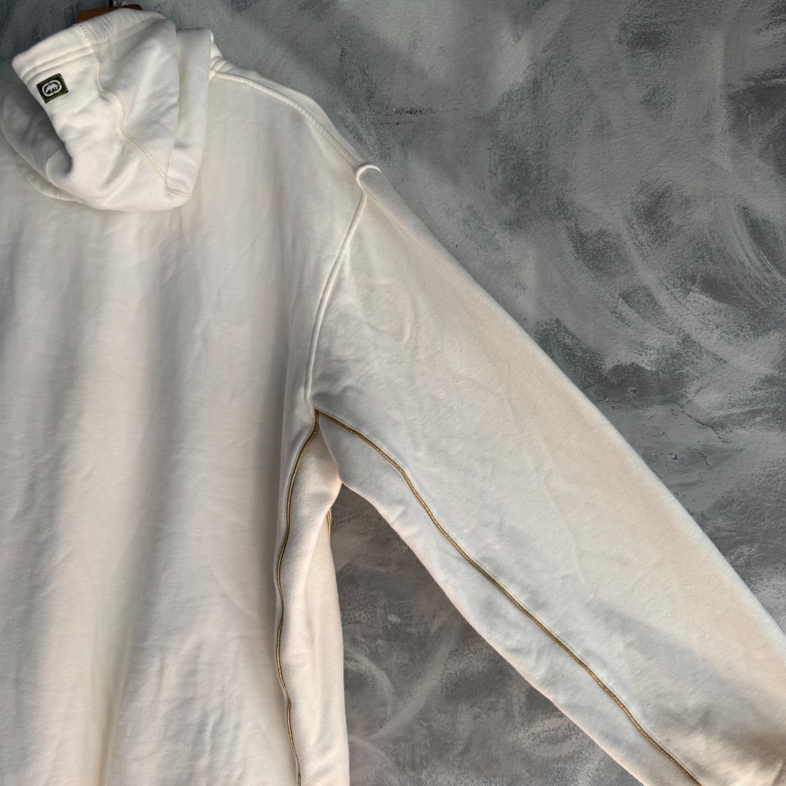 Vintage Ecko Unltd Hoodie Mens 2XL White Gold Sweatshirt Hip Hop Zip Up Y2K