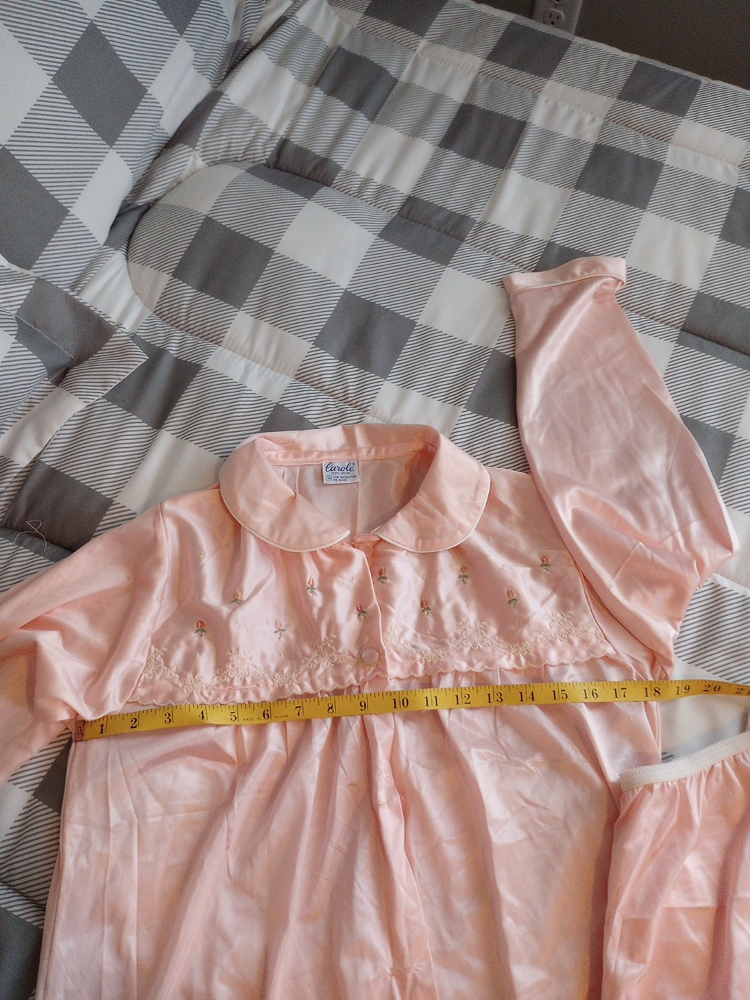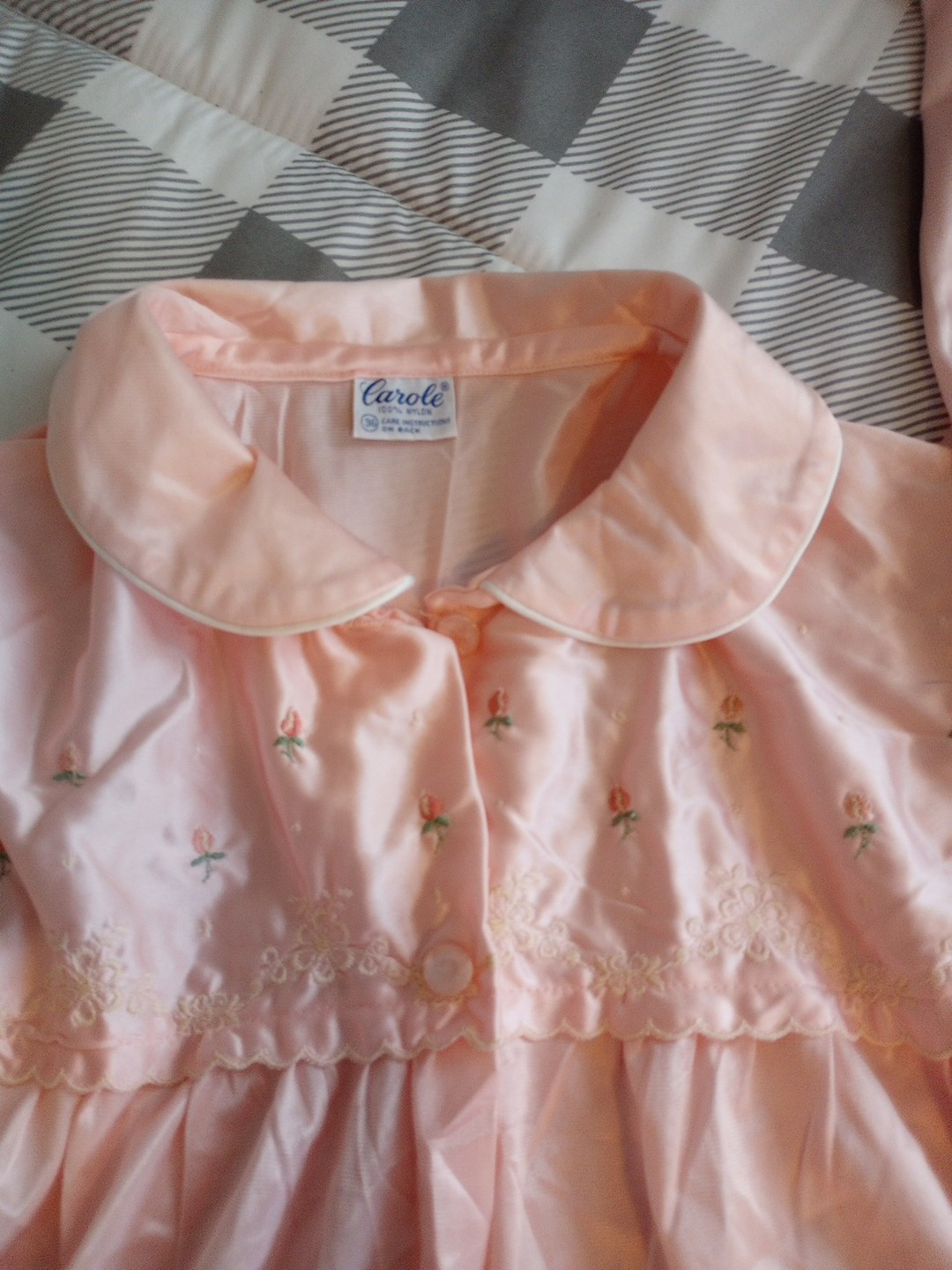 Women's Vintage Carol Pink Embroidered Nylon Pajamas Size 36 S/M
