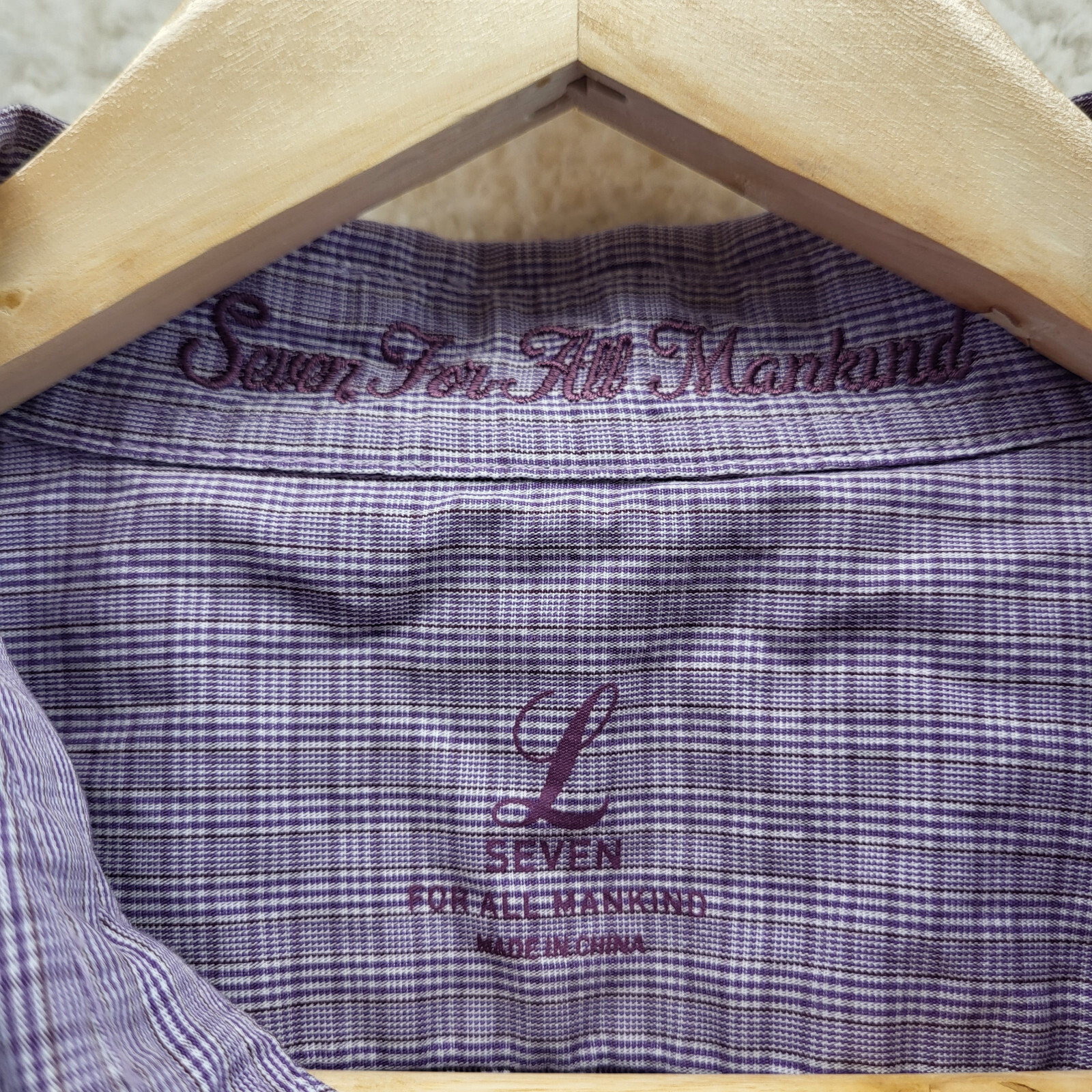 7 For All Mankind Shirt Mens Large Purple Check Button Long Sleeve Collar