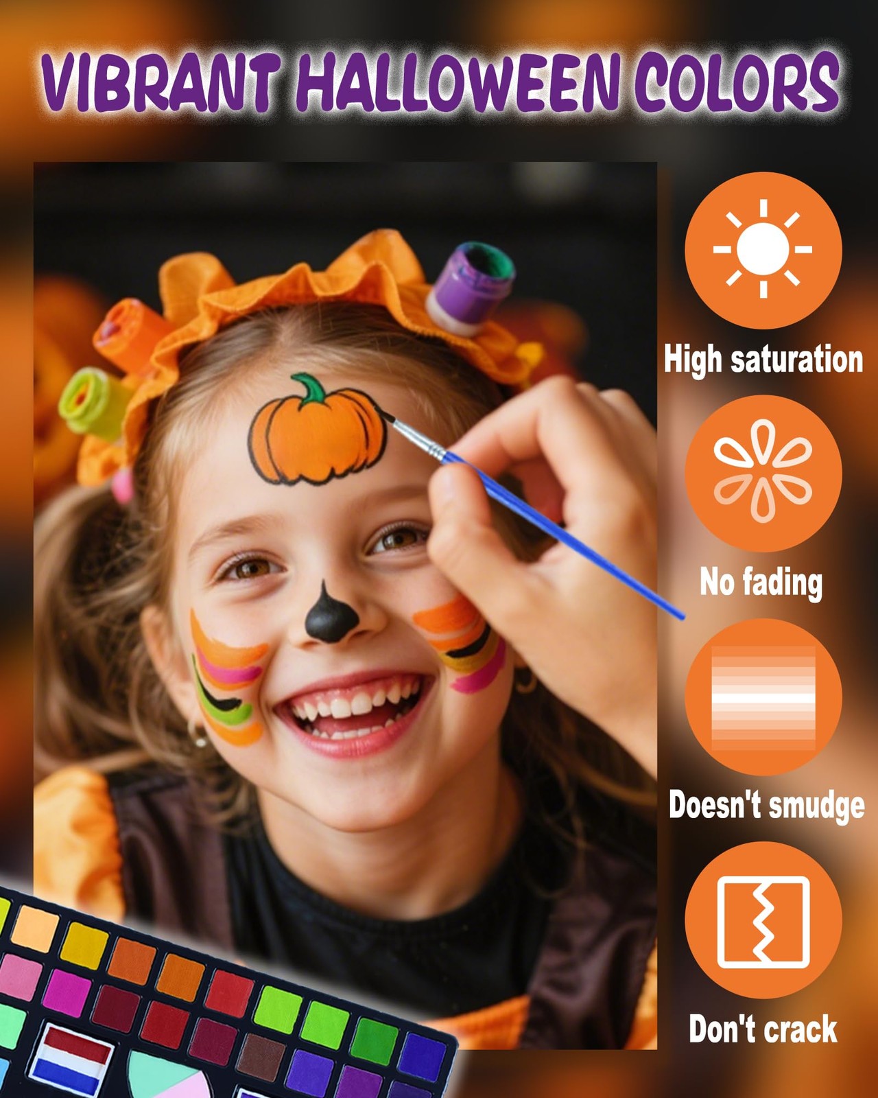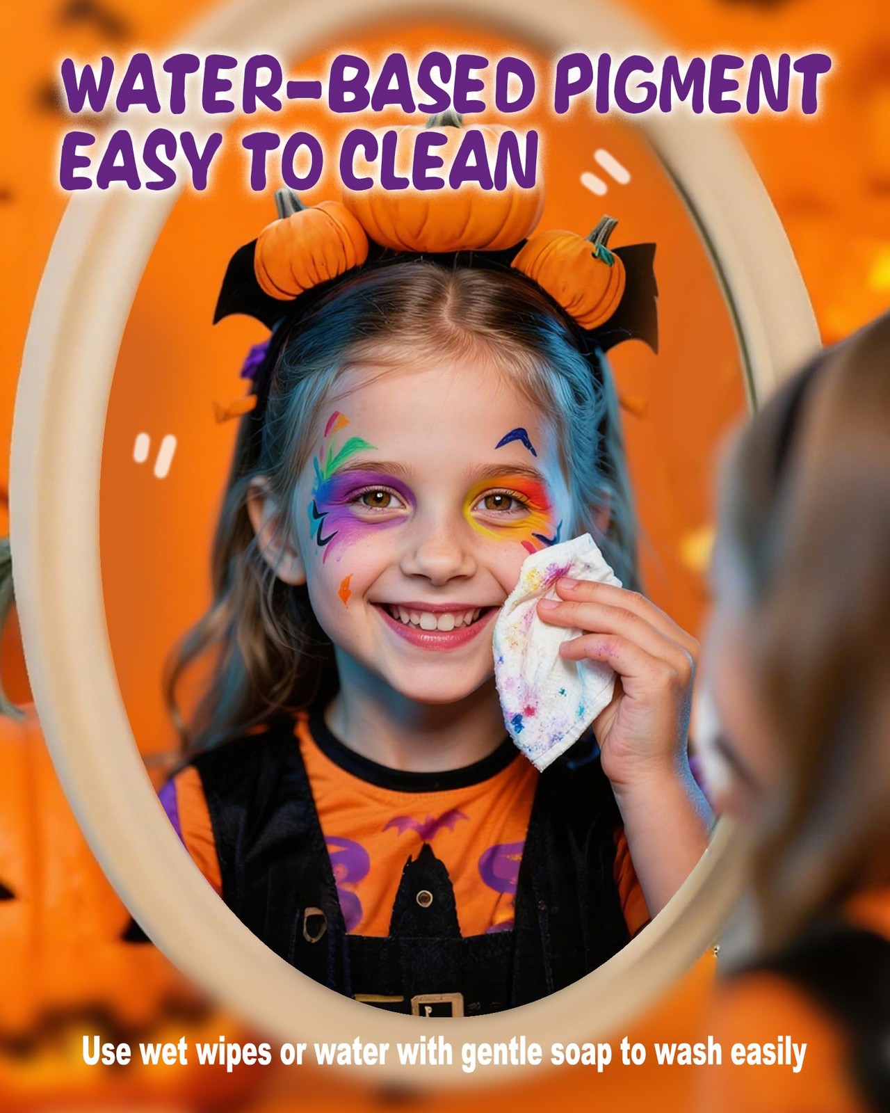 Face Painting Kit for Kids, 28 Colors Water Activated Face Paint Includes Hal...