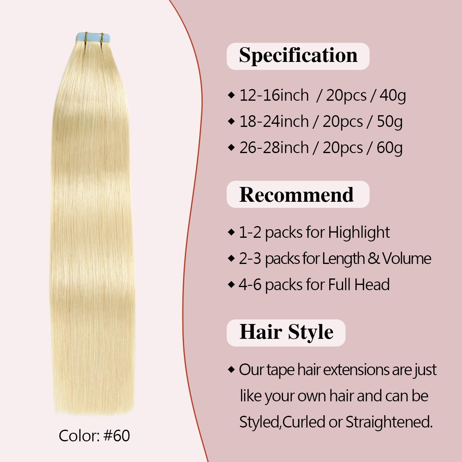 Sunya Blonde Tape-In Human Hair Extensions 14 Straight Platinum