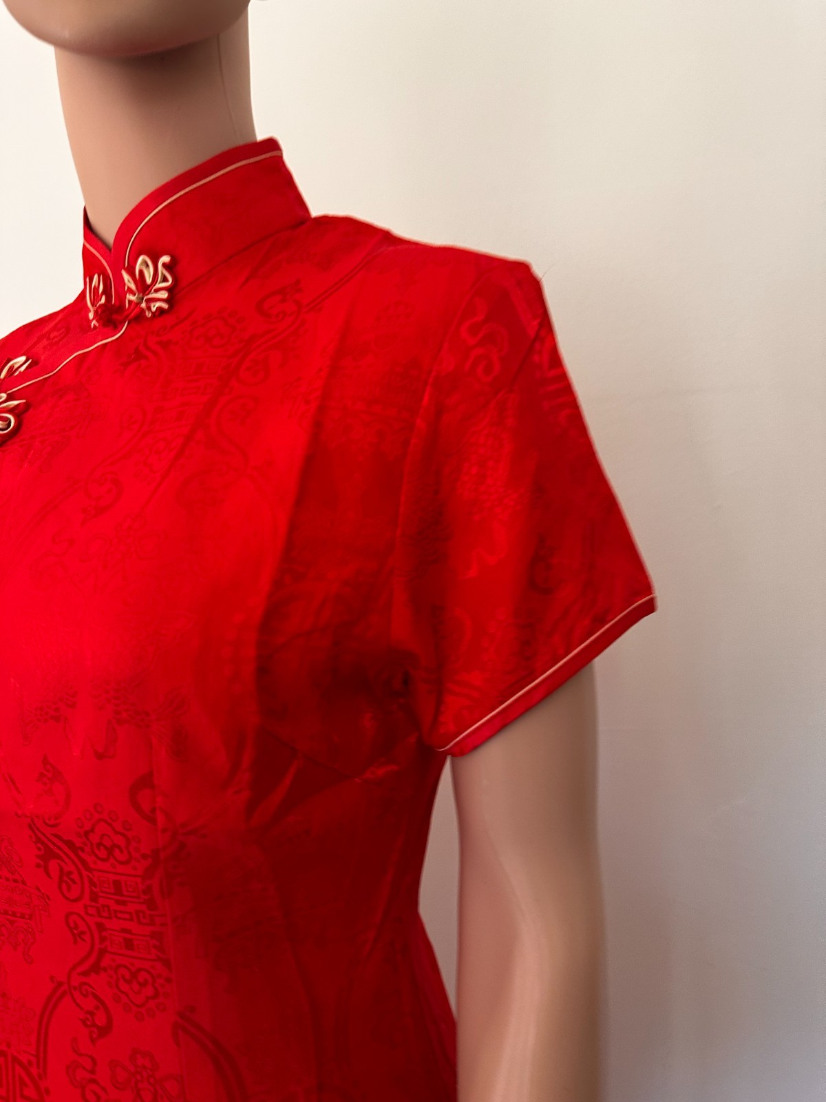 как выглядит Vintage Red Cheongsam Qipao Dress Chinese Brocade Dress Mandarin Collar фото