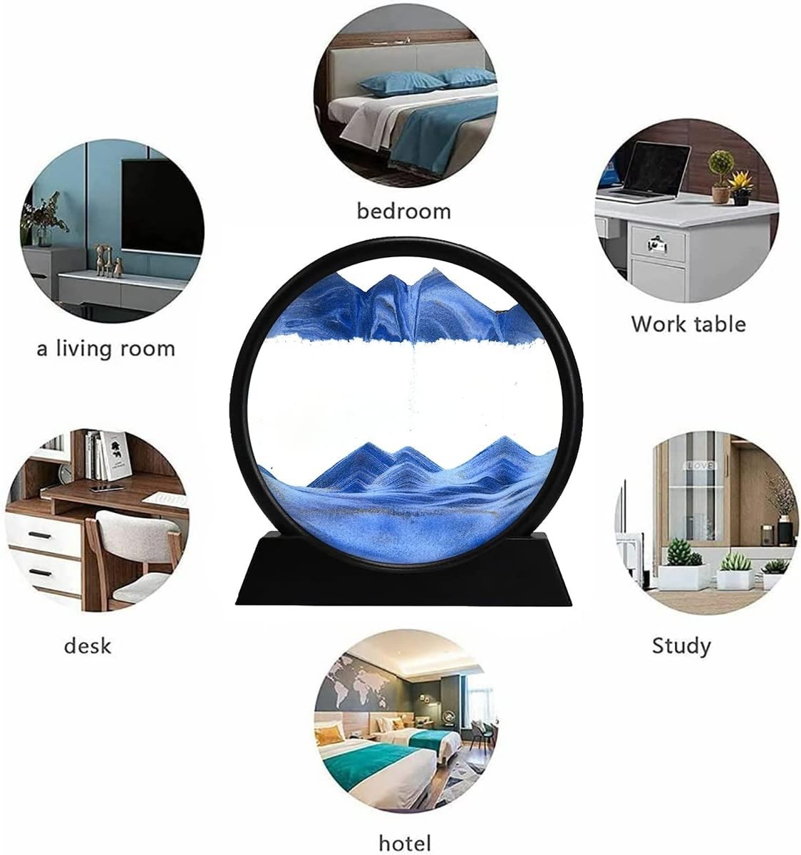 3D Dynamic Sand Art Liquid Motion, Moving Sand Art Picture Round Glass 3D Dee...