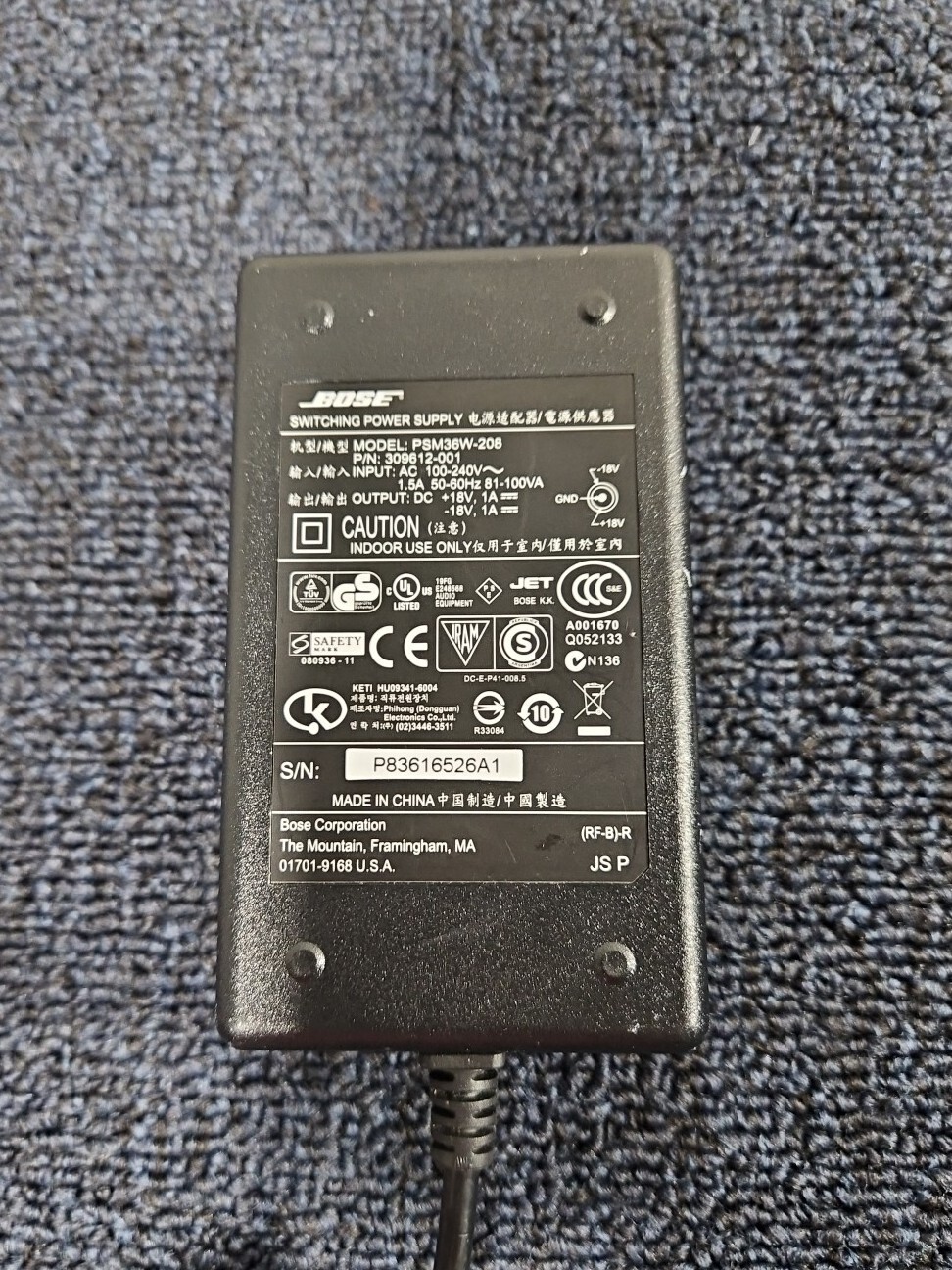 Bose Switching Power Supply PSM36W-208 309612-001 Black Genuine OEM SoundDock