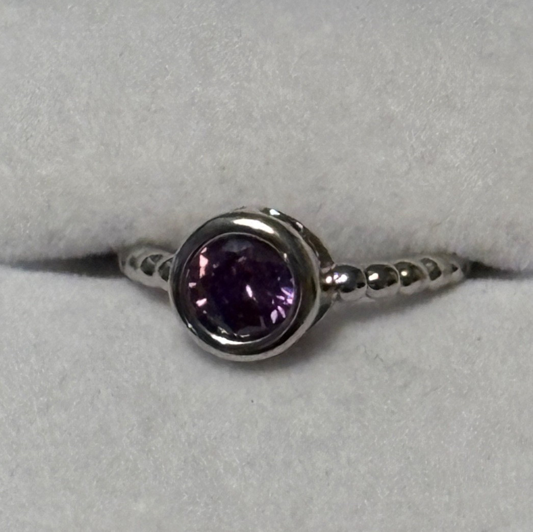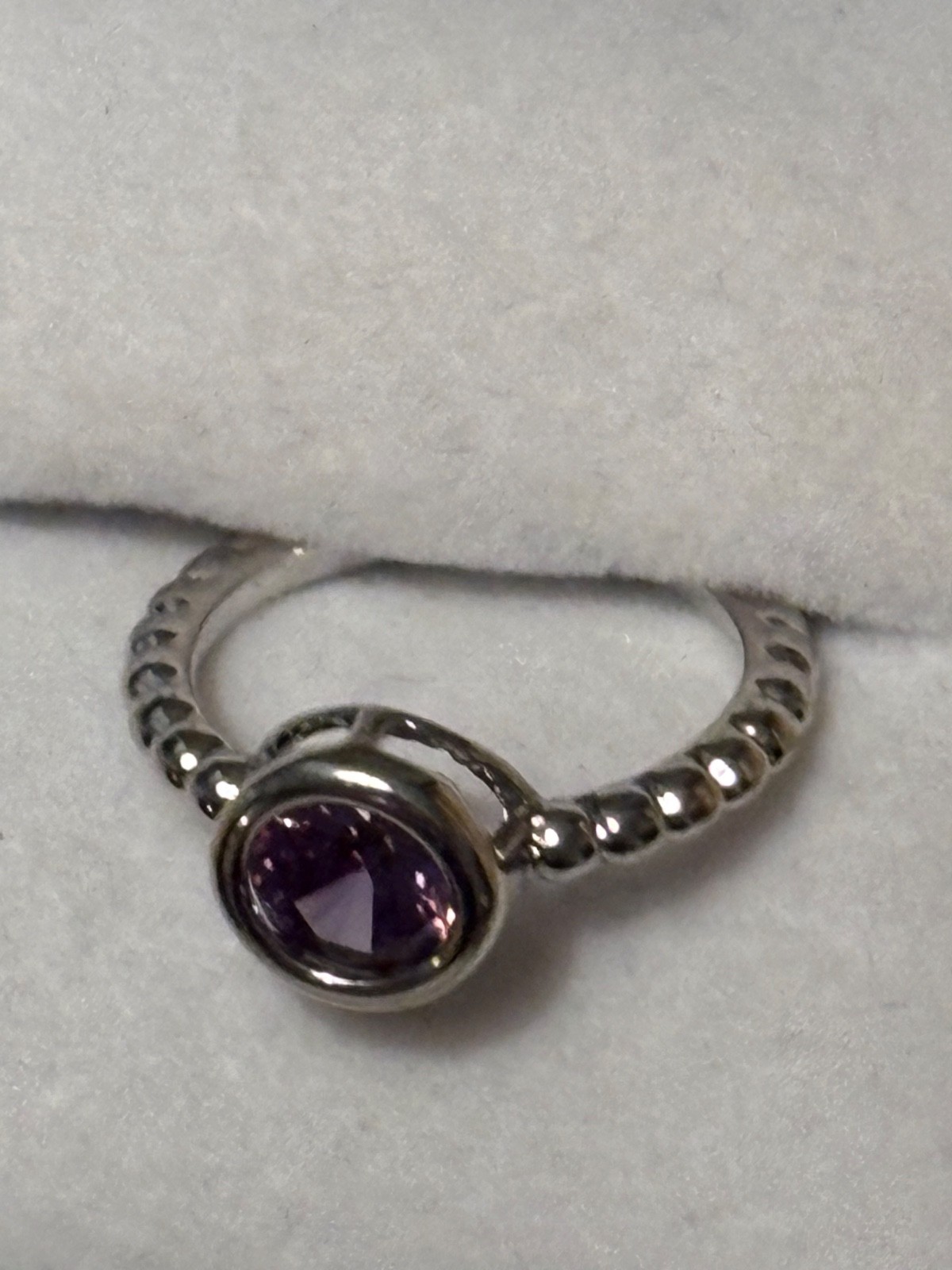 как выглядит Size 6.5. Genuine Purple Amethyst Gemstone Ring. Set In Silver Band. фото