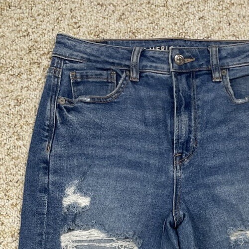 American Eagle Jean Women's size 4 Mom Jeans Distressed Stretch Mid Rise 28x27