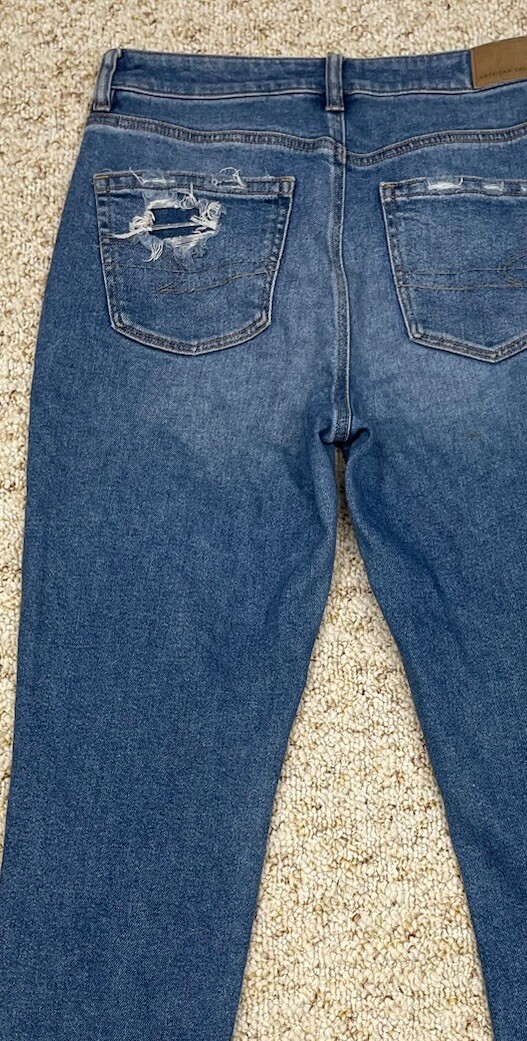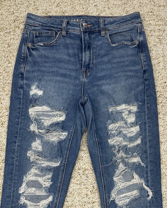 как выглядит American Eagle Jean Womens size 4 Mom Jeans Distressed Stretch Mid Rise 28x27 фото