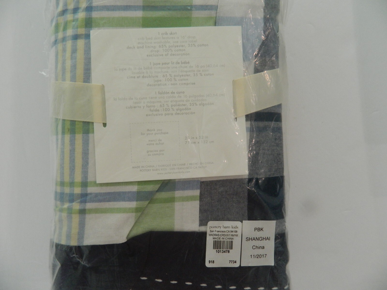 как выглядит New POTTERY BARN KIDS MADRAS CRIB SKIRT 16" Drop фото