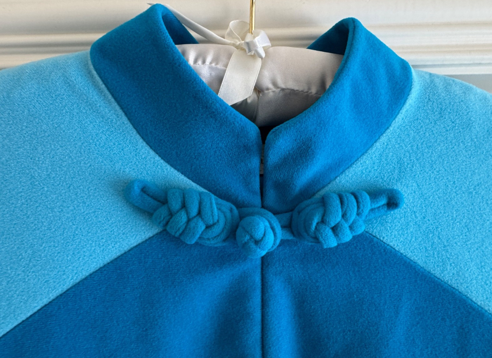 Vassarette Sz L Mandarin Robe Blue Raglan Pockets MINT Rare Fleece Zip USA Asian