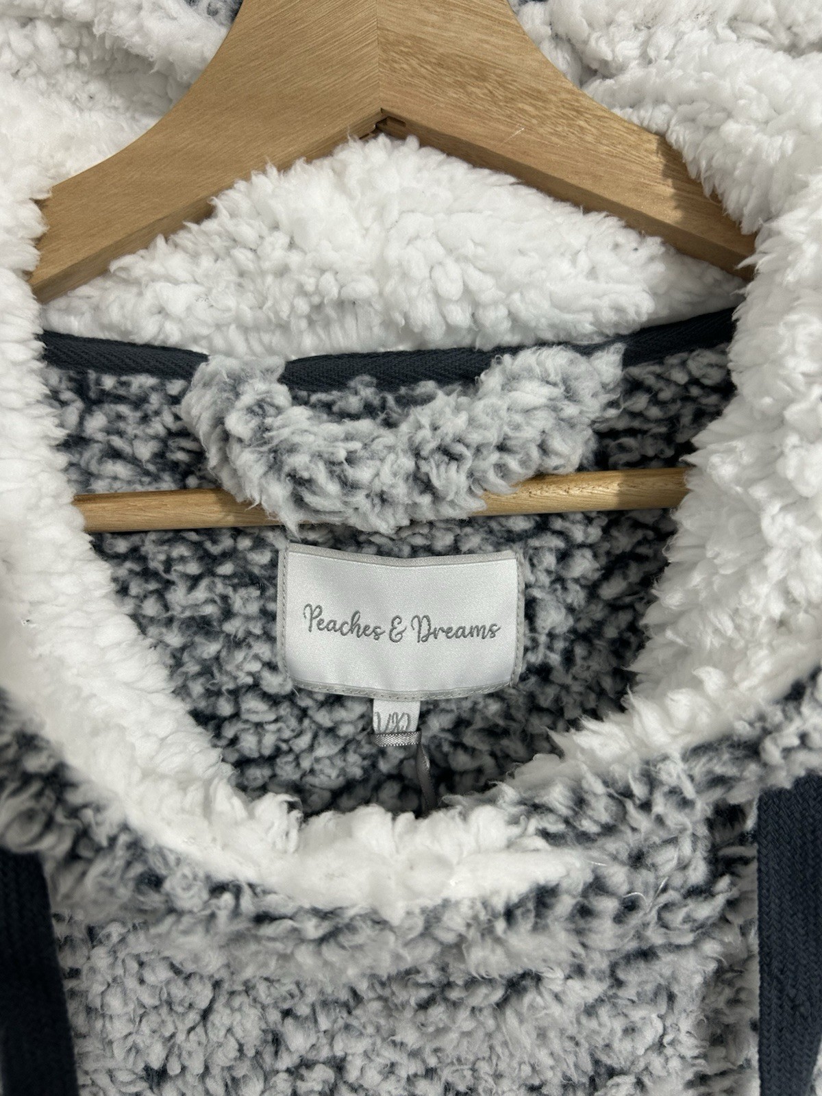 Peaches Dreams Grey Sherpa Teddy Fleece Long Hoodie Blanket Size Large/XL