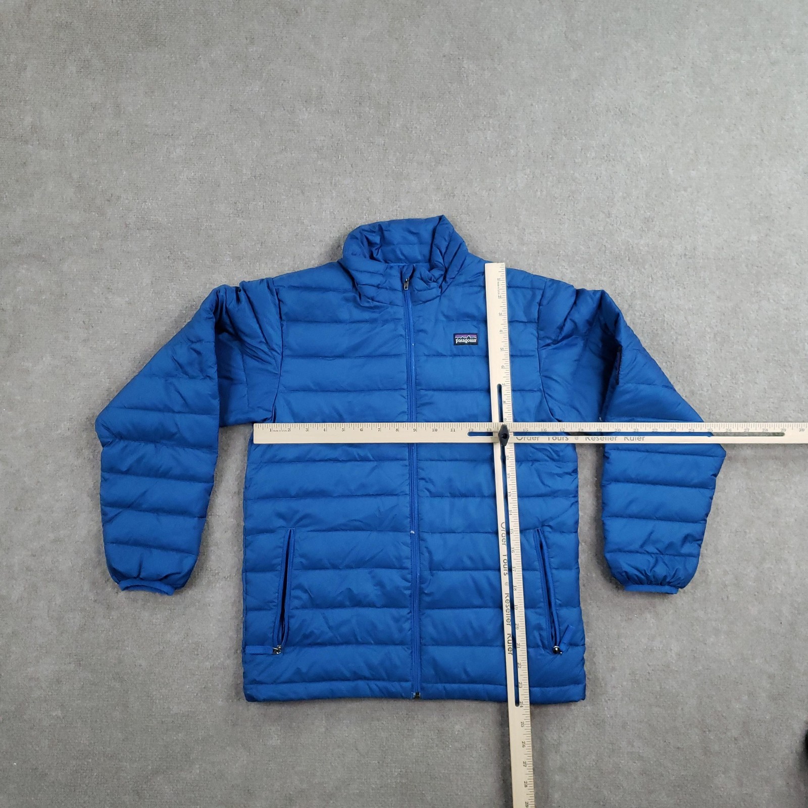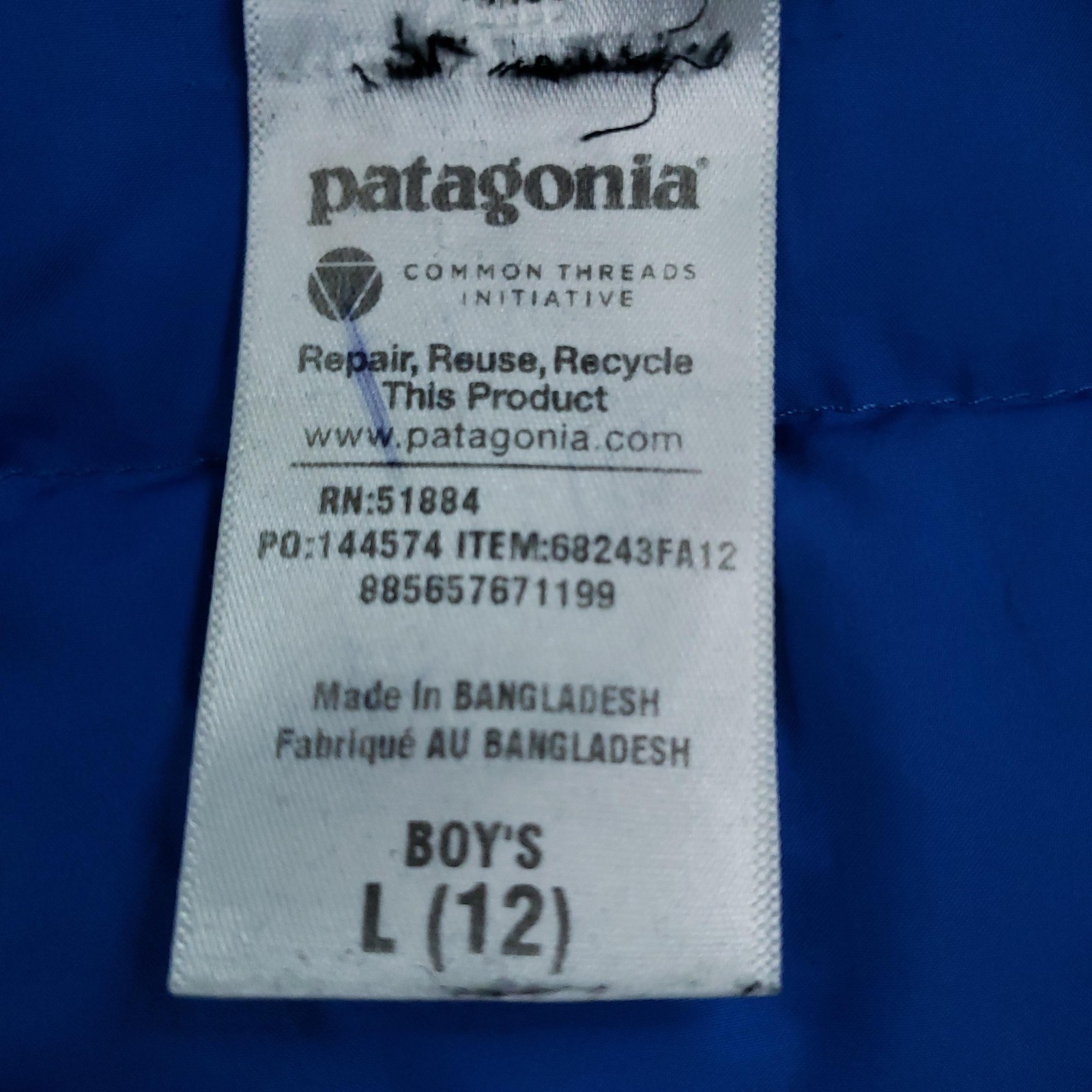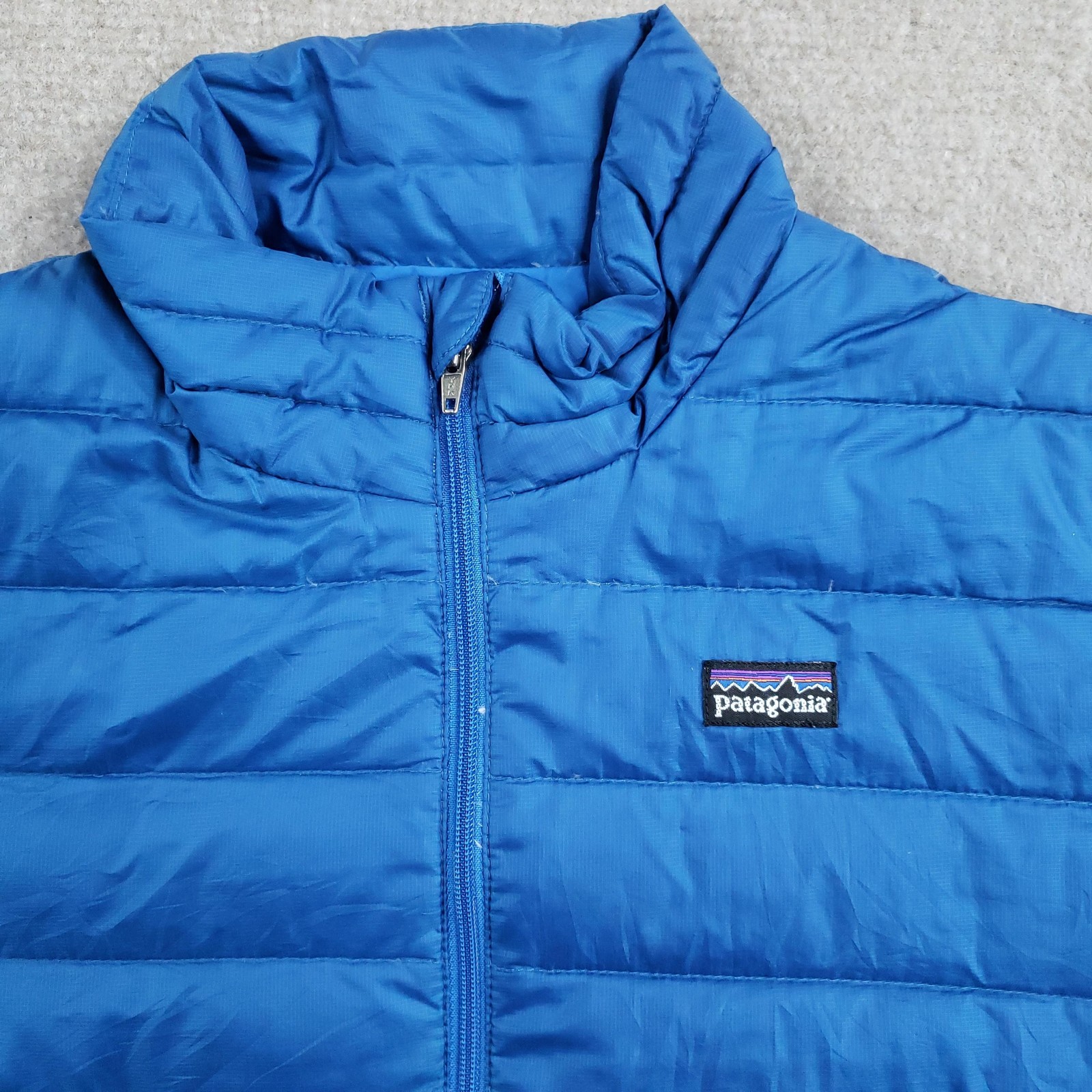 как выглядит Patagonia Down Sweater Jacket Boys L Blue Puffer Goose Full Zip 68243FA12 фото