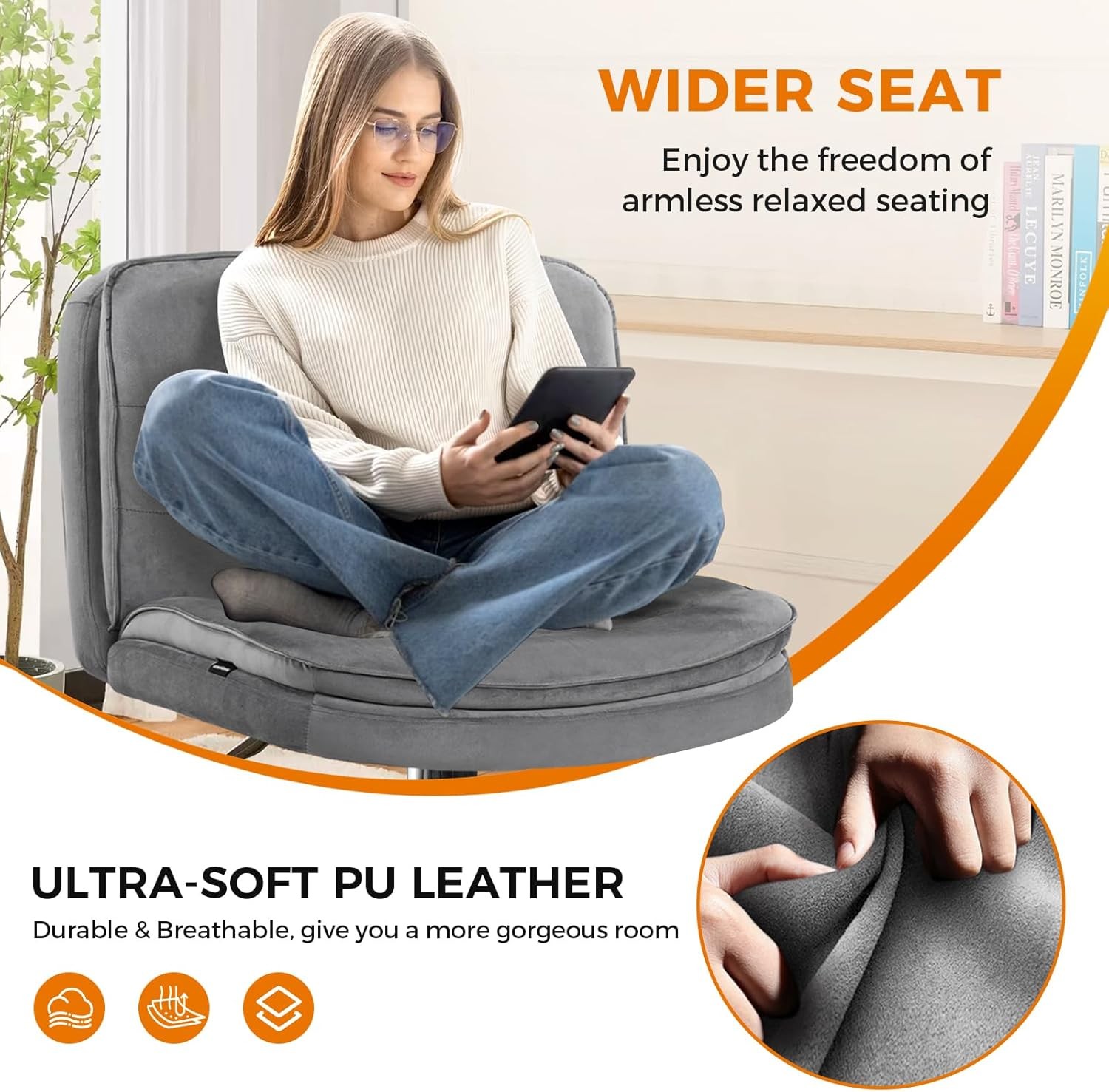 Criss Cross Chair W/ Wheels Armless Cross Legged Office Chair Wide Home Office