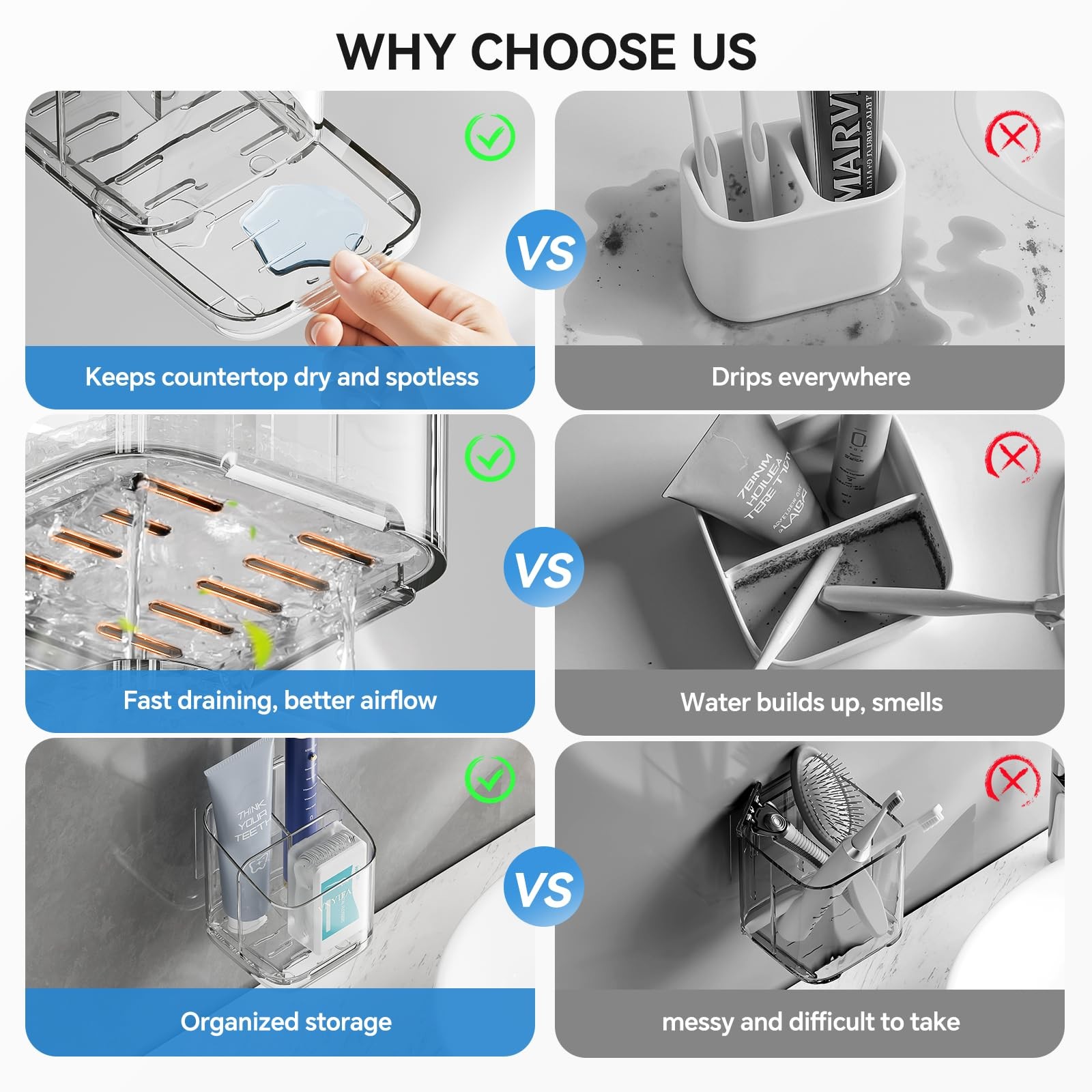 Toothbrush Holders for Bathrooms, 3 Slots Detachable Electric Clear