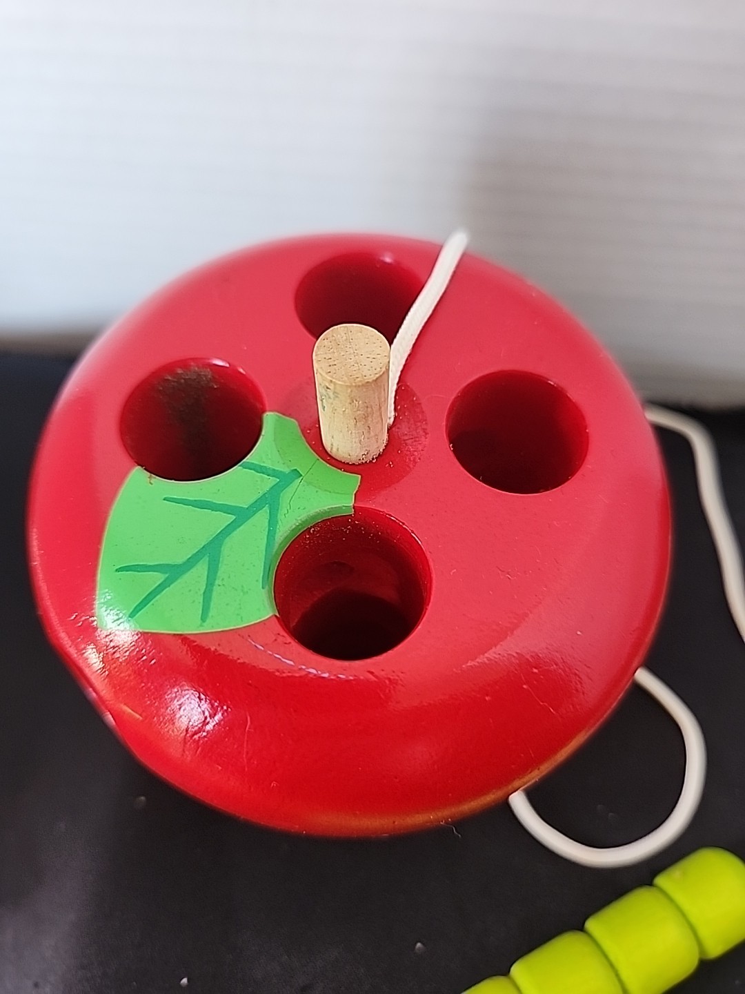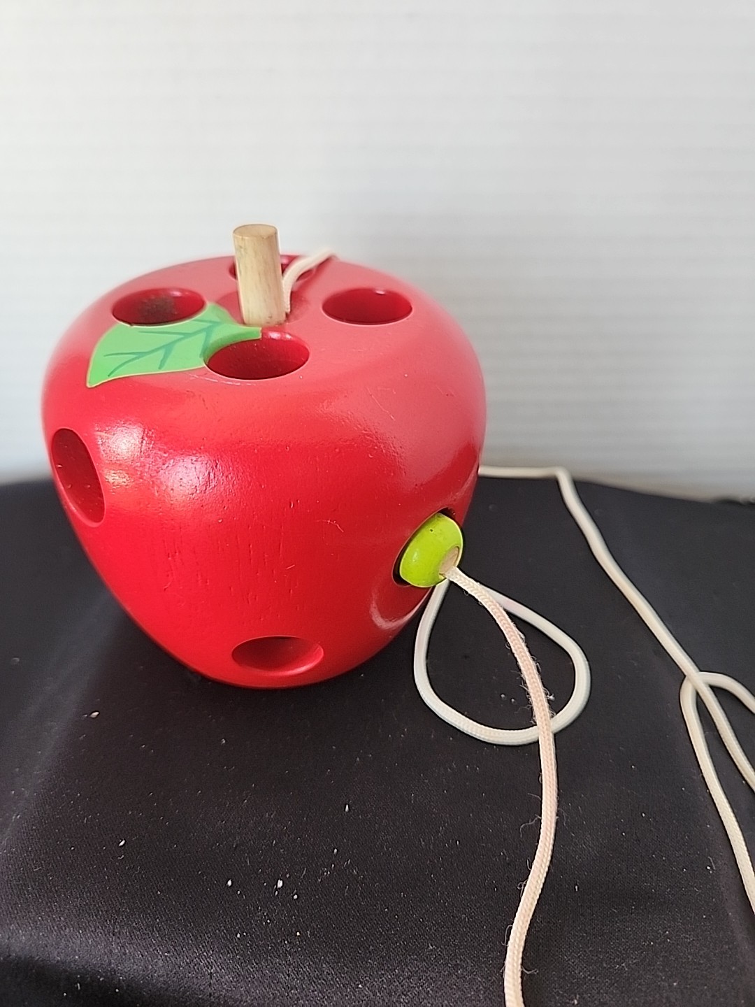 Wood Apple With Holes For Lacing Threading For Toddler Learning