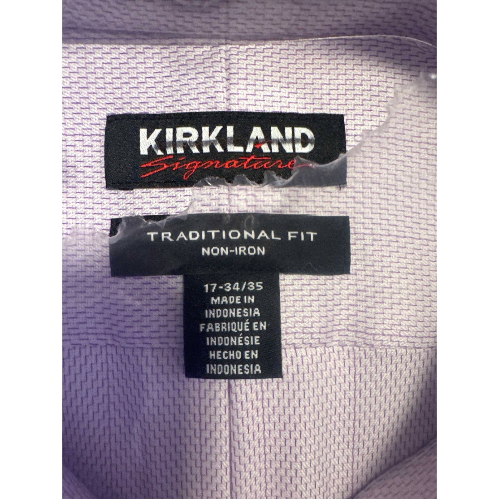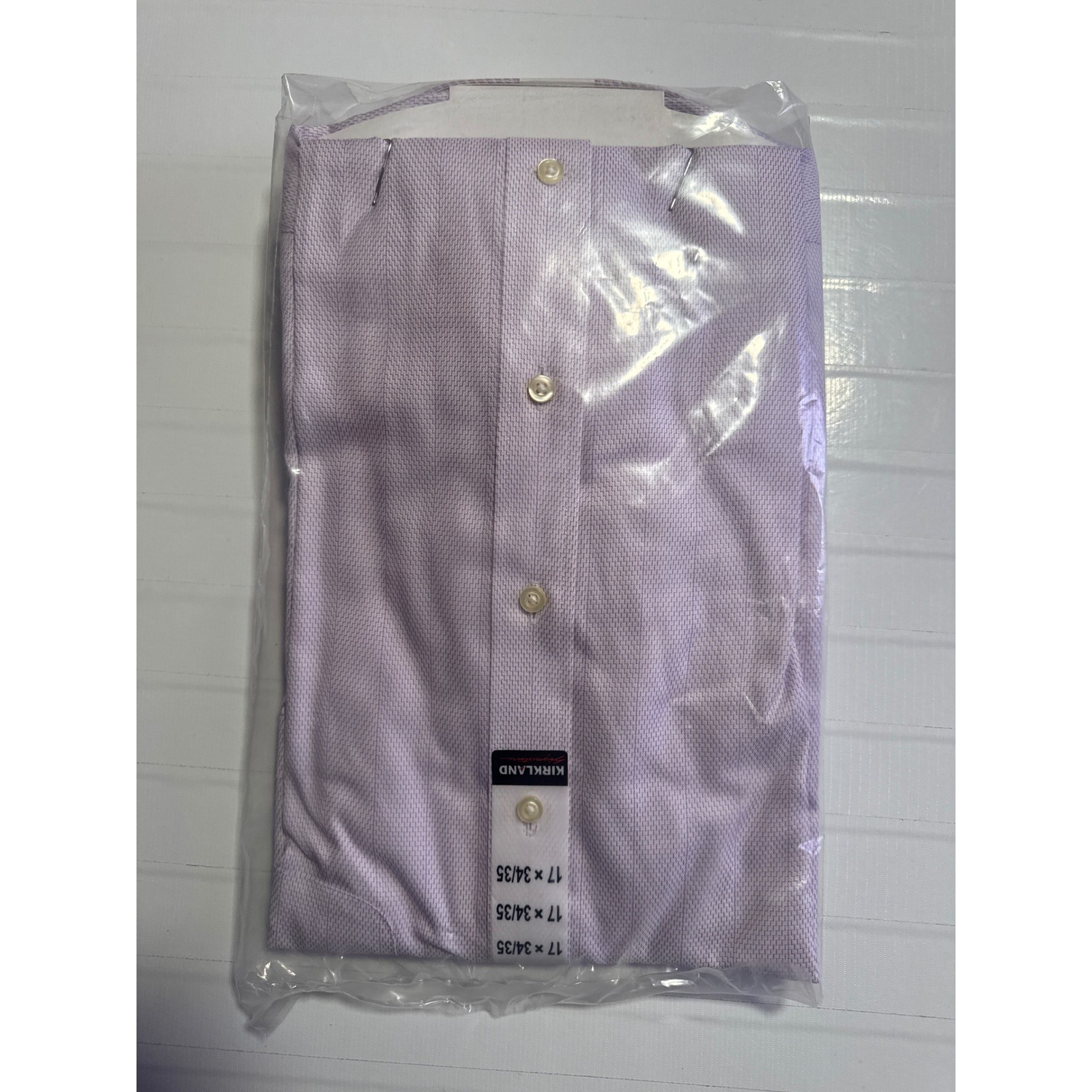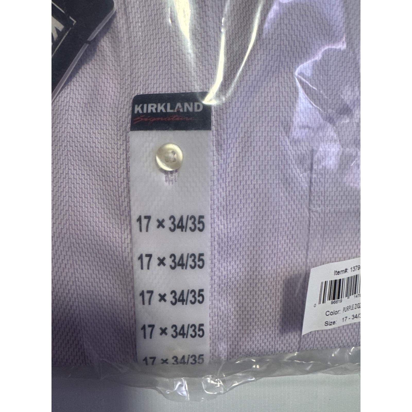 Kirkland Signature Mens Dress Shirt Purple Zigzag Stripe Non-Iron 17 34/35 NEW