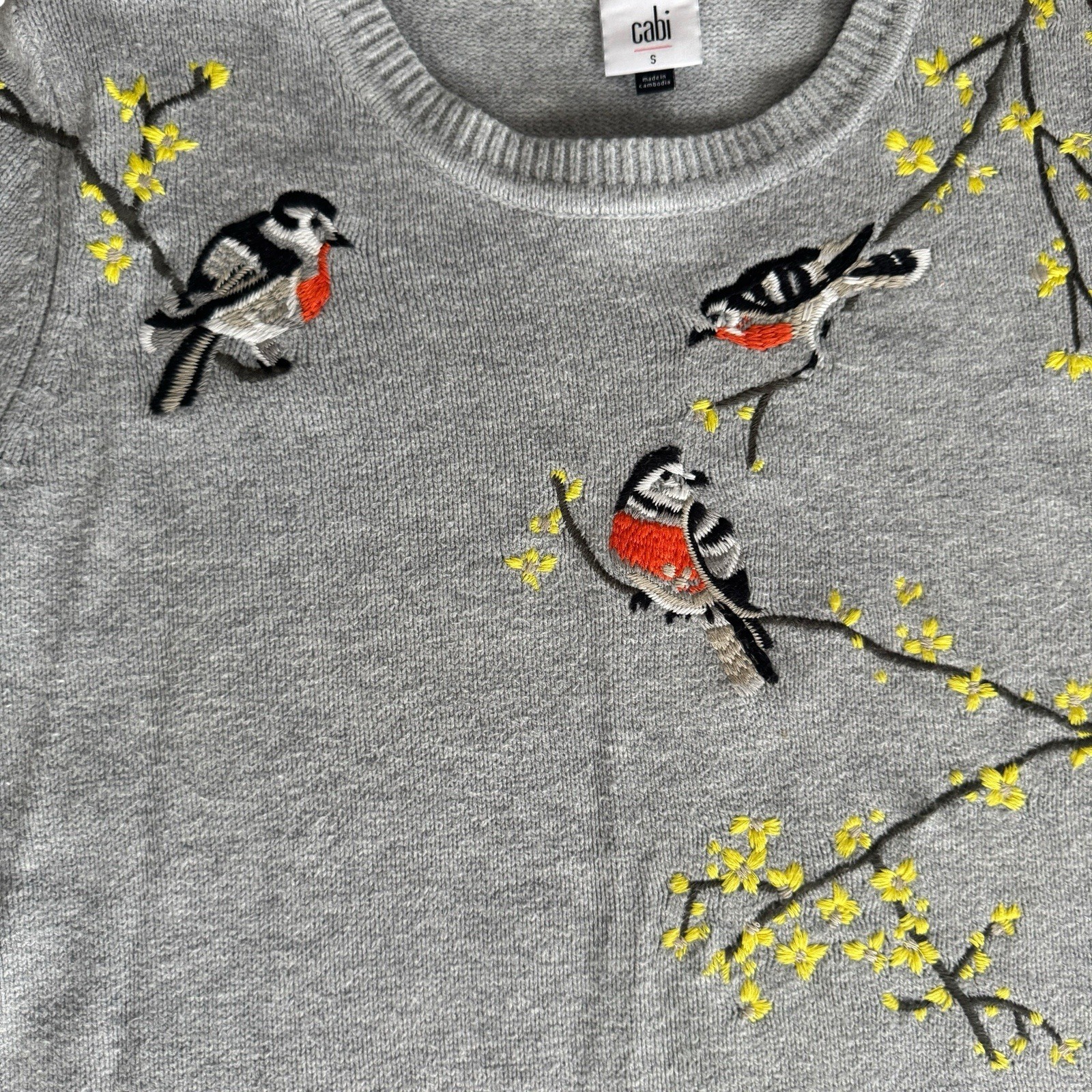 как выглядит Cabi Songbird Sweater 4482 Gray Birds Size Small Long Sleeve Pullover фото