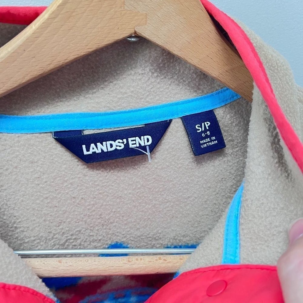 как выглядит Lands End Southwestern Aztec Fleece Snap Neck Pullover- Size Small фото